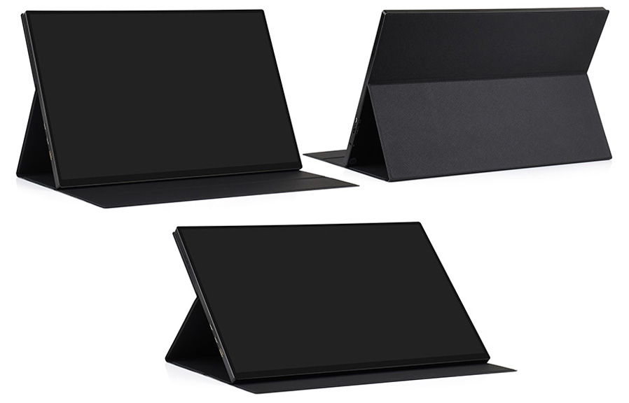 Толщина экрана составляет около 10 мм, а вес - около 1,35 кг (2,97 фунта), что немного тяжеловато для портативного дисплея, но он поставляется в комплекте со съемным чехлом, который также работает как подставка с двумя регулируемыми углами обзора. Монитор не оснащен встроенным аккумулятором, поэтому он будет получать питание непосредственно от подключенного хост-устройства или потребует специального внешнего блока питания. В качестве приятного штриха предусмотрено 75-миллиметровое крепление VESA.