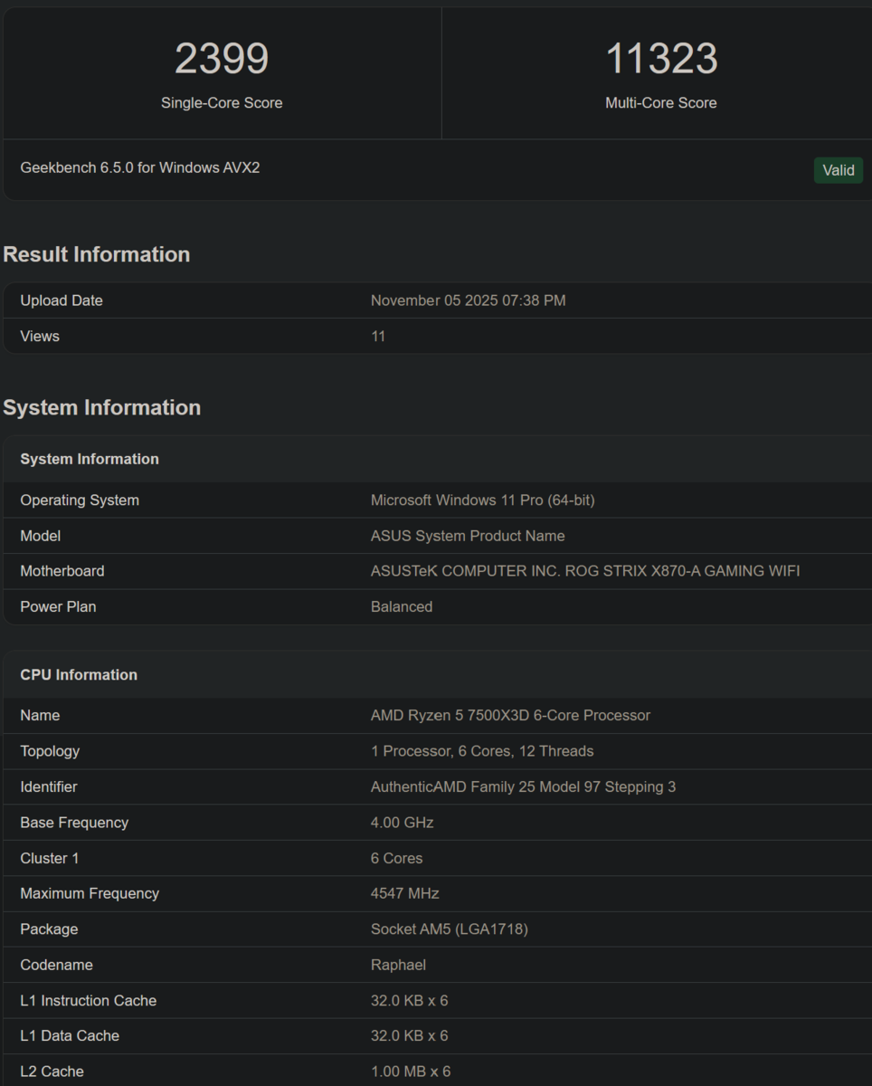 Ryzen 5 7500X3D набирает 2 399 и 11 232 балла в одноядерных и многоядерных тестах Geekbench при тактовой частоте 4,6 ГГц. Его производительность более или менее соответствует уже выпущенному Ryzen 5 7600X3Dи в реальном мире разница между ними может оказаться незначительной. В любом случае, это добавляет еще один вариант для чувствительных к цене рынков.