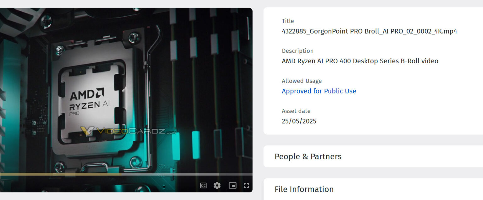 AMD's Gorgon Point линейка APU для ноутбуков будет работать не только на ноутбуках в 2026 году. Судя по всему, AMD планирует вывести ее и на настольные компьютеры. Информация получена с сайтов Videocardz и "Закон Мура мертв"которые поделились этой информацией независимо друг от друга в течение трех дней. На видеоролике показан чип Ryzen AI Pro на материнской плате для настольного ПК, а в заголовке четко указано, что это SKU Gorgon Point.
