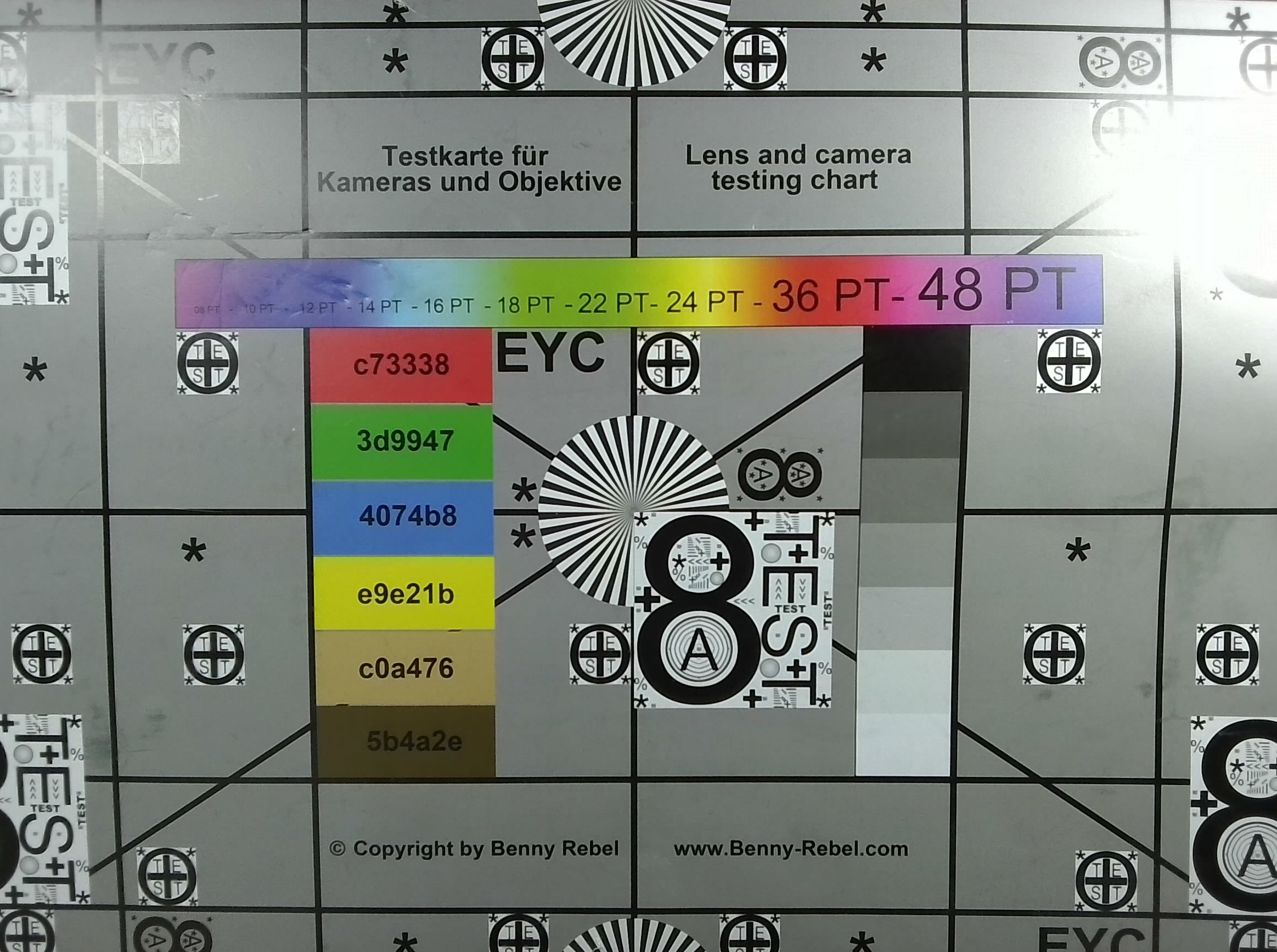 | Colorchecker dE 2000 max. * | 5.9 | 4.4 25% | 15.2 -158% | 18.1 -207% | 7 -19% | 3.4 42% |