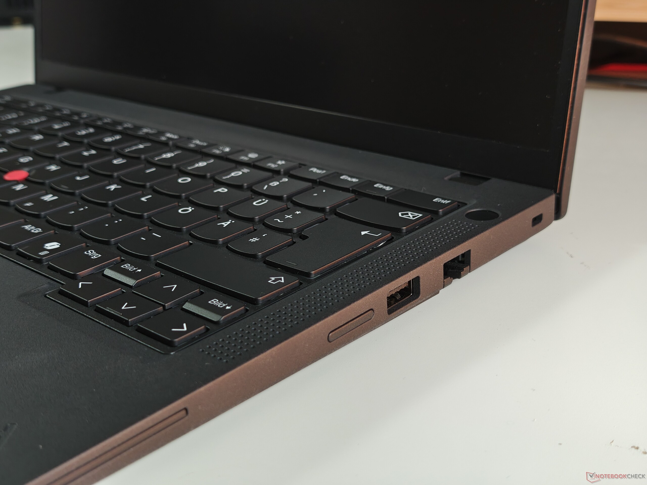 Что касается дизайна корпуса, Lenovo ThinkPad T14 Gen 6, безусловно, обладает классической черной, коробчатой энергией ThinkPad - с несколькими современными дополнениями. К ним, безусловно, относится бугорок камеры на крышке, который также служит практичной ручкой для открывания ThinkPad. К сожалению, открыть его одной рукой не получится, но в остальном качество ThinkPad налицо. ThinkPad T14 G6 - это надежный и устойчивый ПК с корпусом из пластика и магния. Как и у всех черных ThinkPad, гладкая, слегка прорезиненная поверхность довольно легко пачкается.