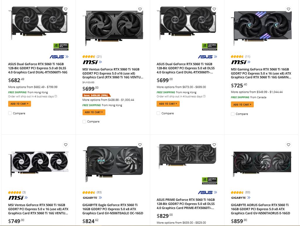 Например, большинство RTX 5070 Ti AIB на Newegg в настоящее время продаются гораздо дороже, чем 749 долларов США MSRP. То же самое можно сказать и о RTX 5060 Ti 16 ГБ. К счастью, модель RX 9070 и RX 9070 XT все еще продаются в розницу по разумным ценам.