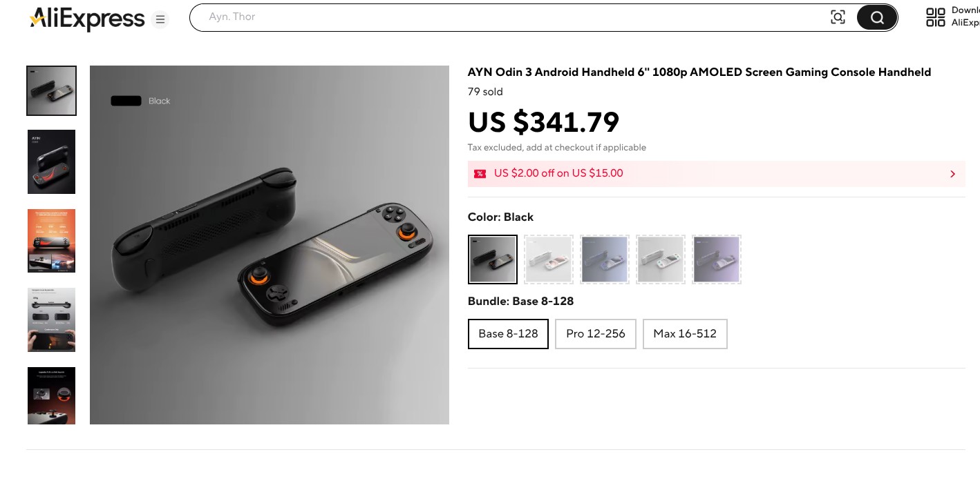 - AYN Thor Base (Snapdragon 8 Gen 2, 8 Гб ОЗУ + 128 Гб хранилище) - $311.90