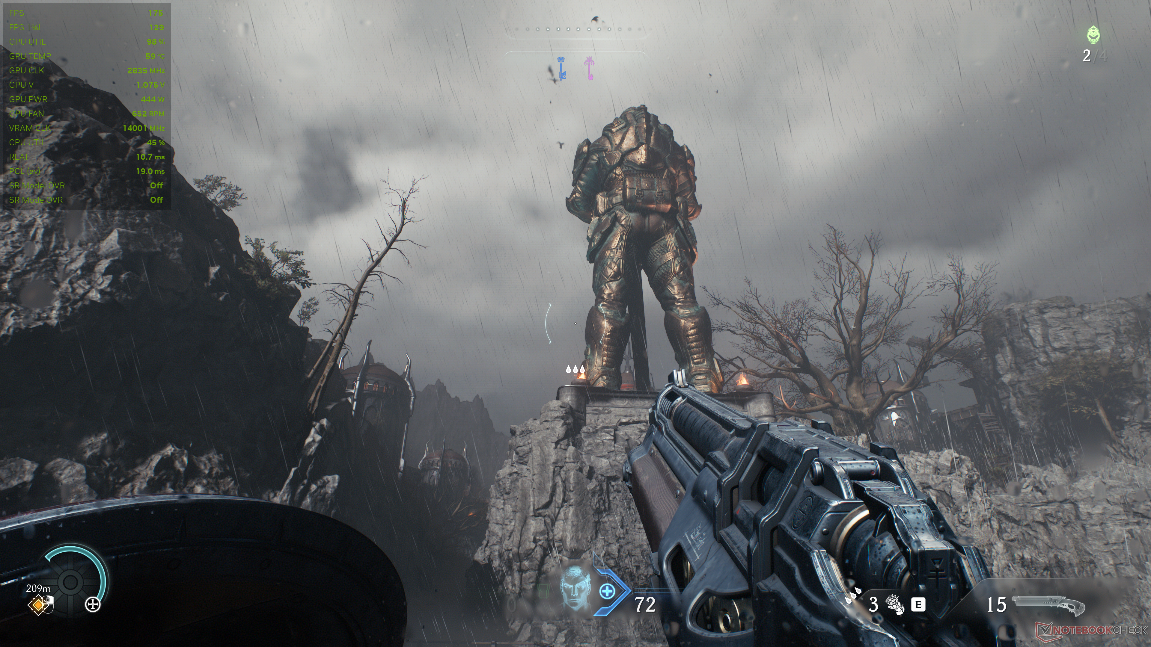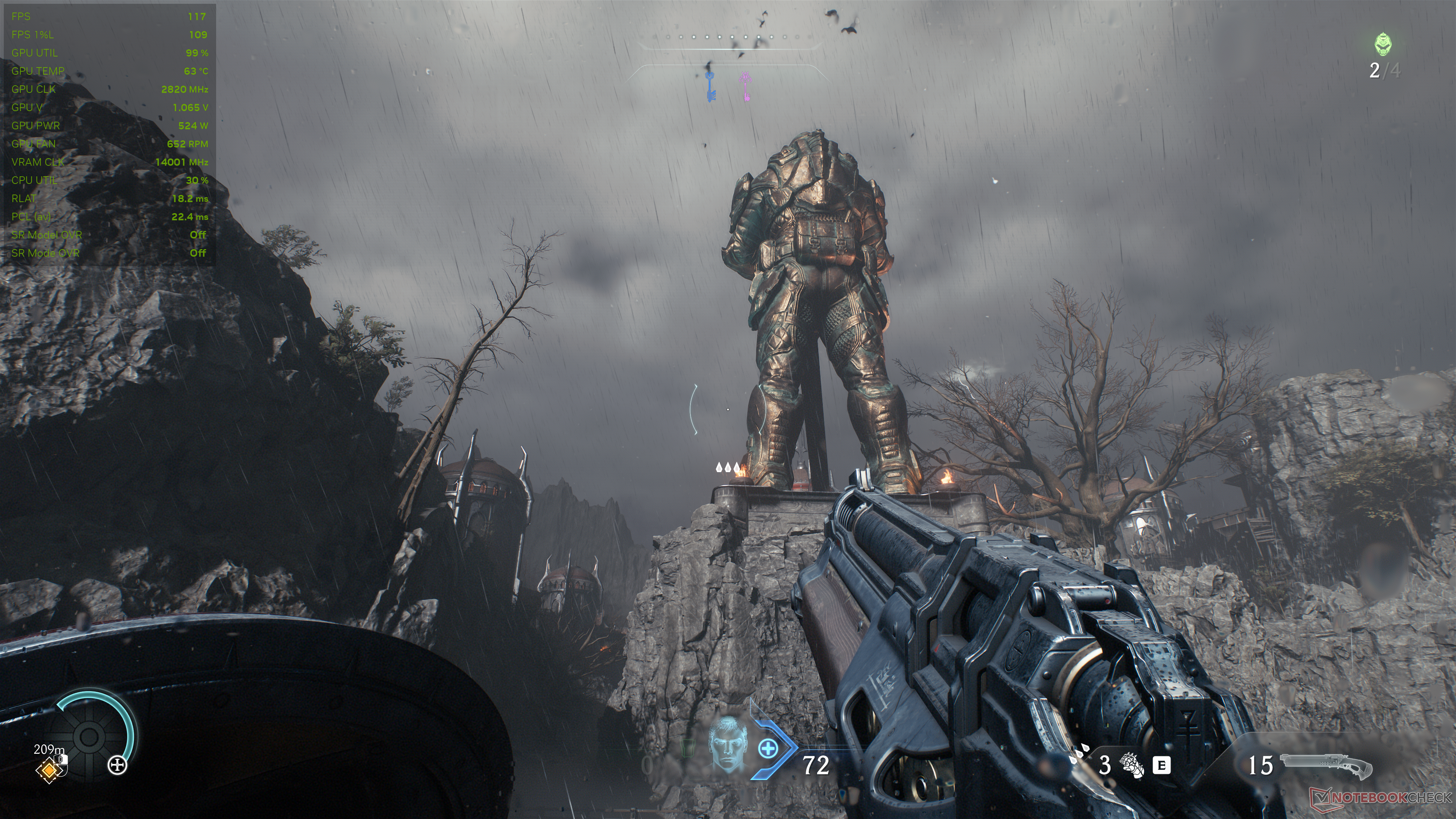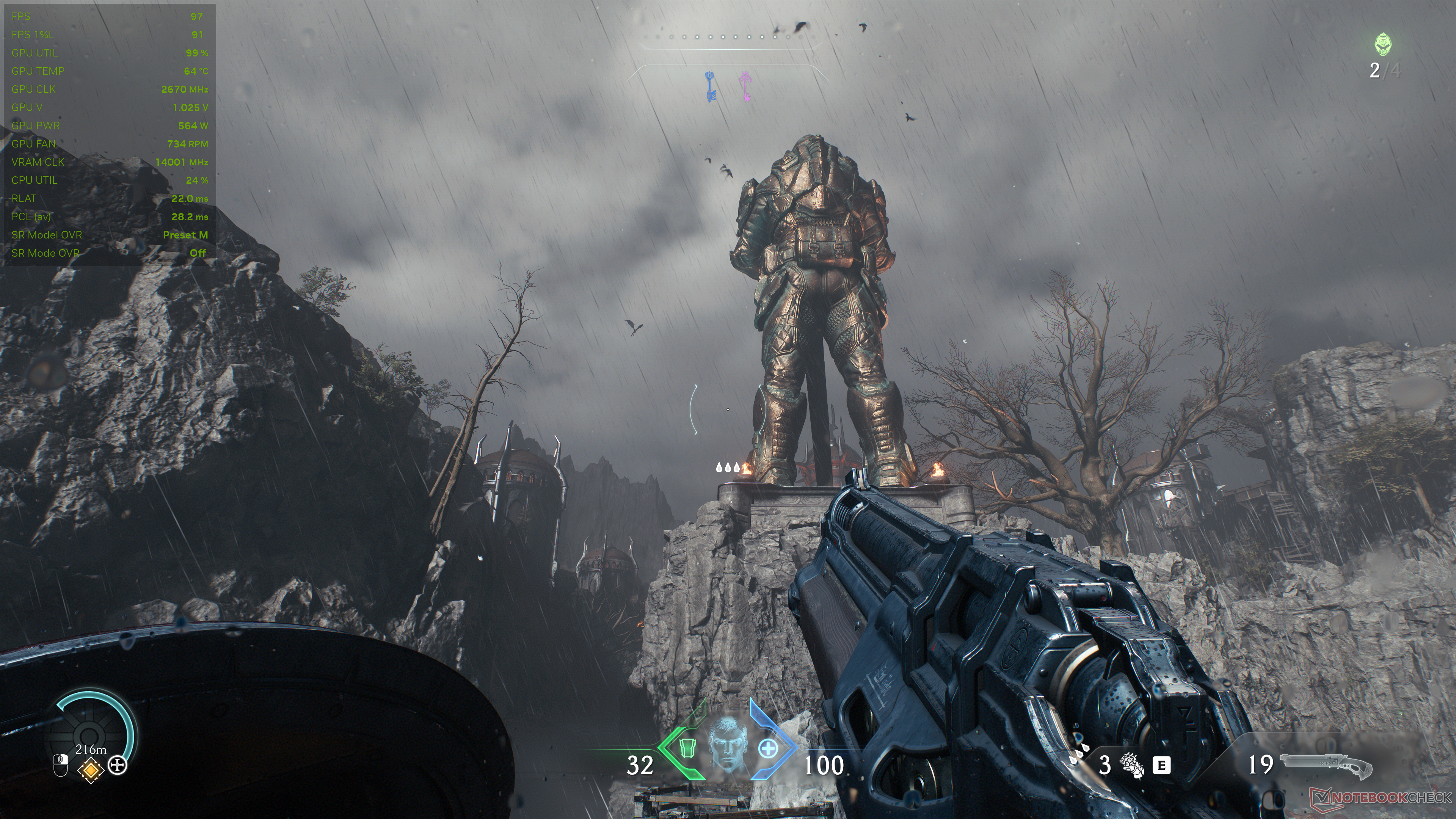 Doom: The Dark Ages использует встроенную в движок idTech8 трассировку лучей, которая придает игре большое погружение и ценность. Игра также теперь поддерживает трассировку траектории с реконструкцией лучей (RR), но мы отключили ее для этого сравнения.