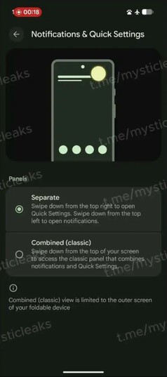 Согласно этим скриншотам, Android 17 по умолчанию будет отображать быстрые настройки только при проведении пальцем вниз из правого верхнего угла экрана. Свайп вниз из левого верхнего угла экрана, напротив, отобразит уведомления. Это уже знакомо по Apple iPhone 17. Пользователи, которым не нравится это изменение, могут вернуться к привычному пользовательскому интерфейсу Android в системных настройках, который объединяет быстрые настройки и уведомления на одном экране