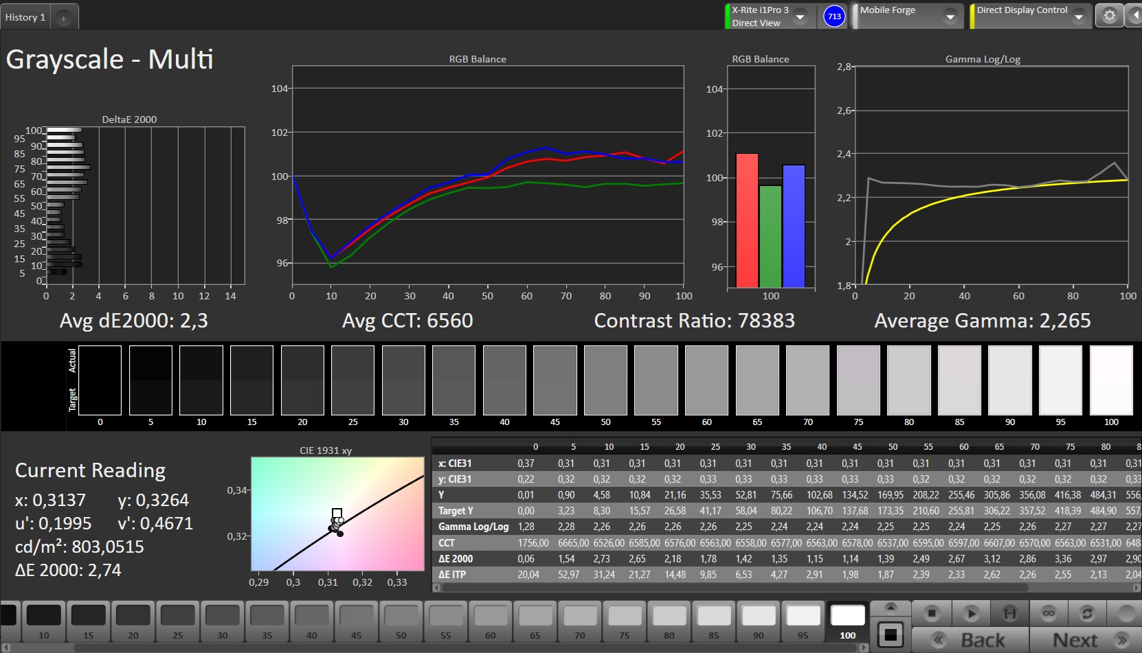 ΔE Greyscale Calman: 2.3 | ∀{0.09-98 Ø5}