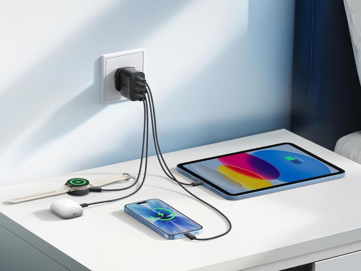 Новое зарядное устройство Anker Zolo Charger оснащено двумя портами USB-C и двумя портами USB-A, что позволяет Вам заряжать до четырех устройств одновременно. Первый порт USB-C обеспечивает мощность до 30 Вт, что, по мнению бренда, позволит Вам заряжать iPhone 17 до 50% за 21 минуту. Второй USB-C обеспечивает мощность до 20 Вт при одновременной зарядке двух устройств. При использовании трех или четырех портов первый USB-C сохраняет свою выходную мощность 30 Вт, а остальные порты делят между собой мощность 15 Вт.
