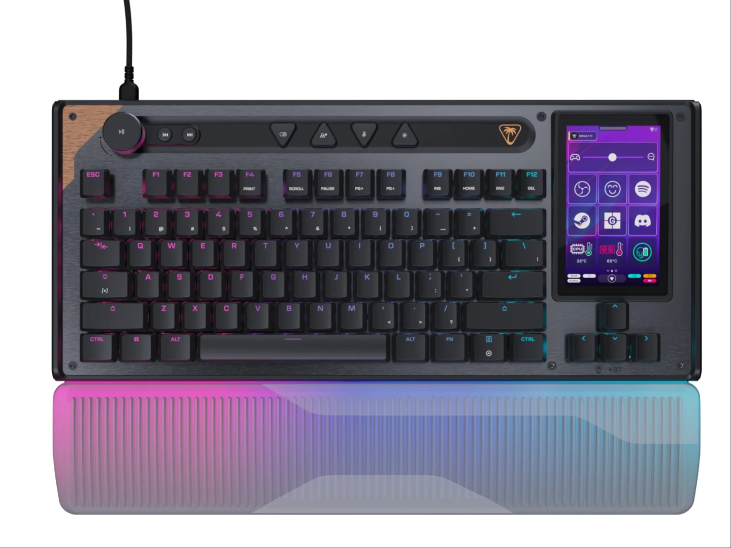Начиная с Command KB7 TKL, это проводная клавиатура с переключателями на эффекте Холла с регулируемым срабатыванием и Rapid Trigger. Самое интересное - 4,3-дюймовый сенсорный экран под названием Command Touch Display, в который встроены элементы управления OBS и функции Streamlabs, что делает стриминг более плавным. Но он предлагает гораздо больше функций, поэтому пользователи, которые не занимаются стримингом, также могут использовать его в полной мере. С ее помощью Вы можете запускать макросы, переключать профили, настраивать звук, запускать приложения и следить за системной статистикой.