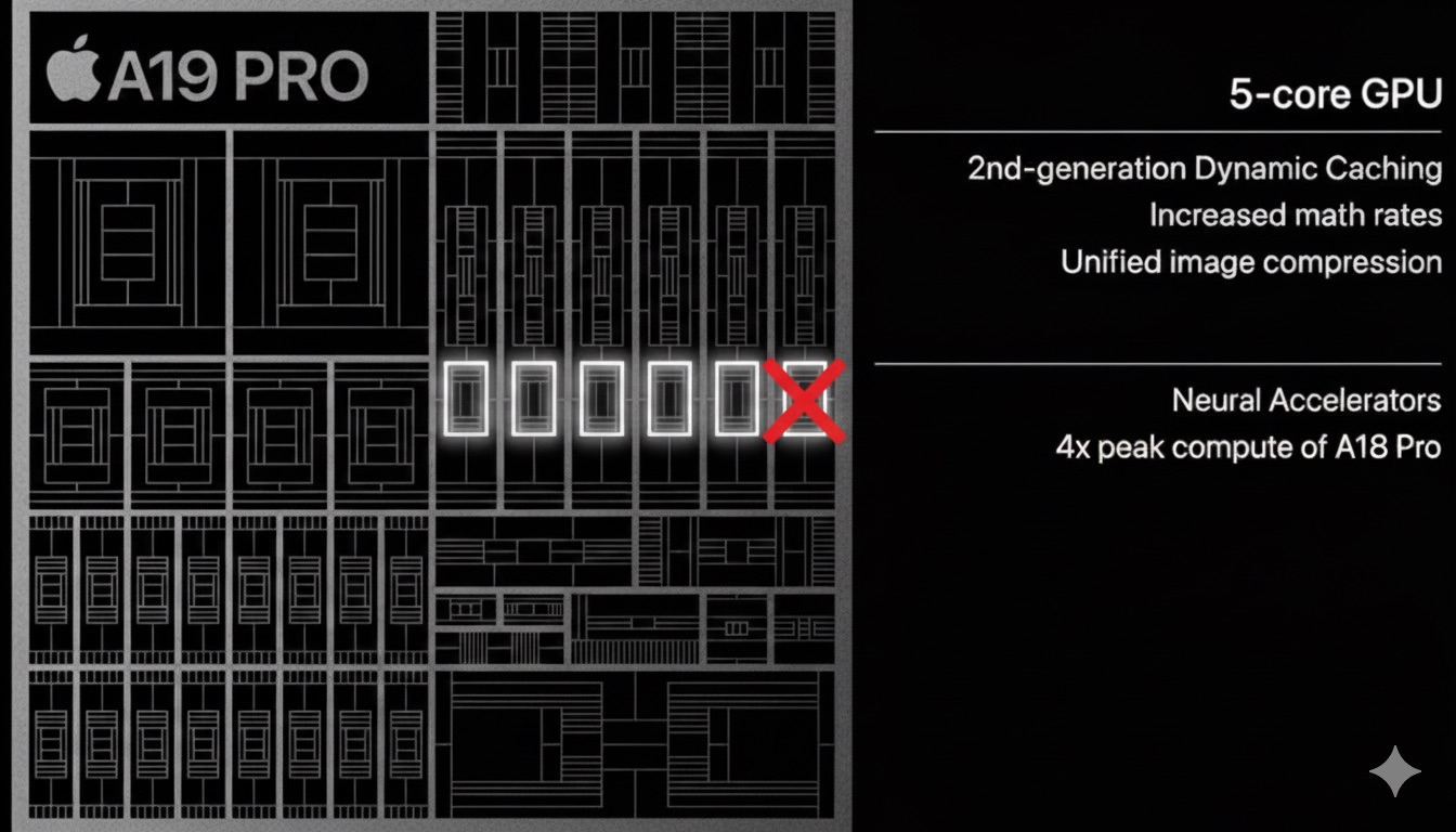 Более медленный A18 GPU не просто имеет на 1 ядро меньше; он также вынужден довольствоваться более старым движком дисплея и видеокодером/декодером.