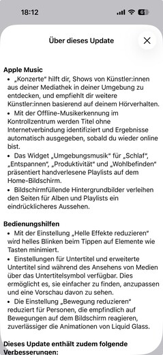 Обновление привносит ряд новых функций, включая возможность распознавания музыки с помощью кнопки Shazam в быстрых настройках, даже когда iPhone не подключен к Интернету, при этом результаты могут быть показаны только при повторном подключении iPhone к Интернету. Новый виджет под названием "Ambient Music" обеспечивает прямой доступ к отобранным вручную плейлистам, которые были оптимизированы для засыпания, работы или отдыха.