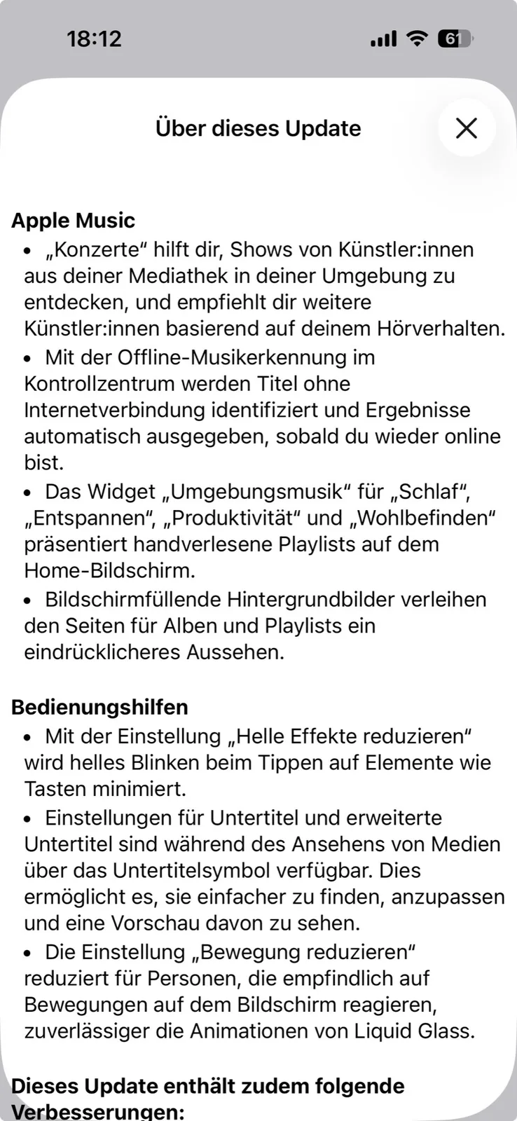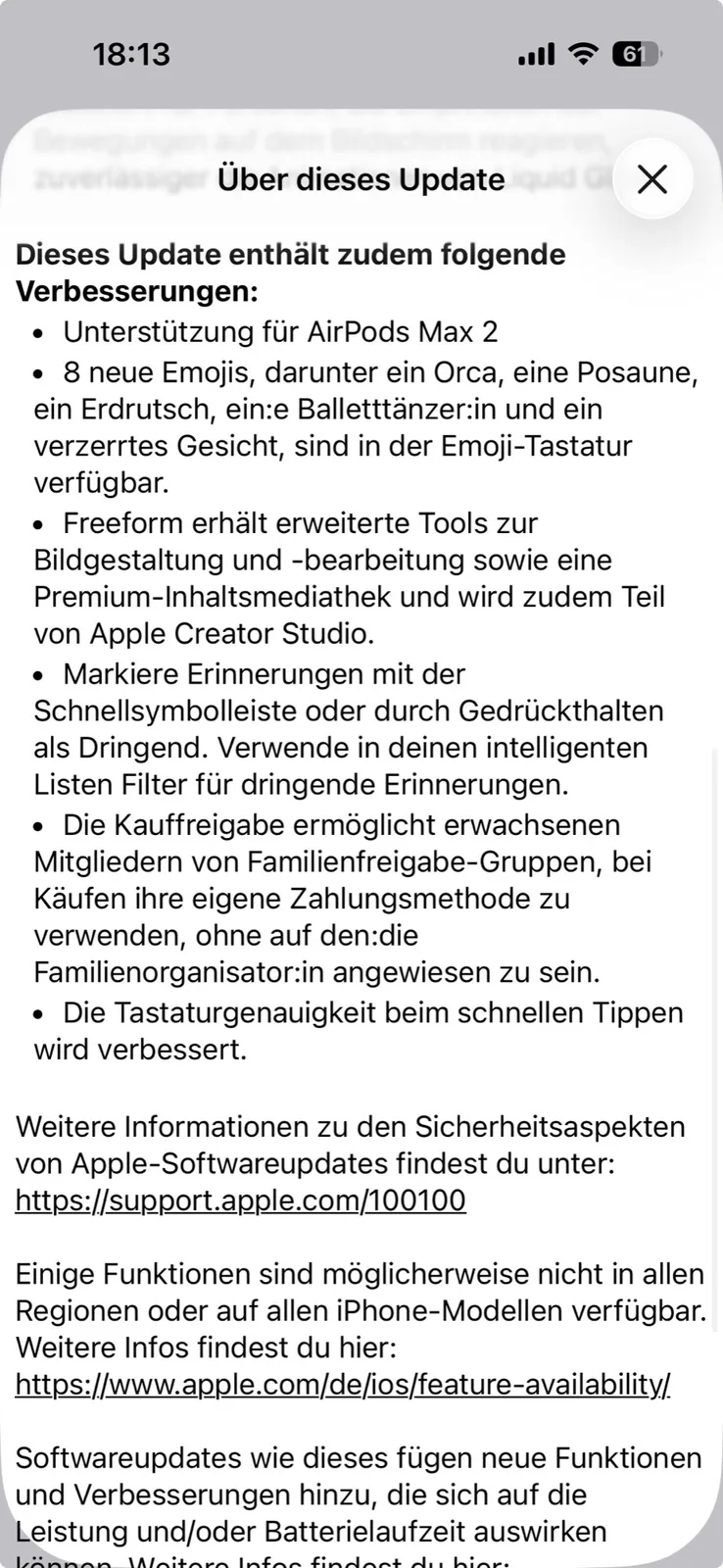 Приложение "Музыка" получило полноэкранные фоны для альбомов и плейлистов, а также функцию "Концерты", которая может показывать живые выступления Ваших любимых исполнителей, находящихся поблизости. Новые опции доступности позволят Вам уменьшить анимацию Liquid Glass и яркие элементы на дисплее. Apple также представляет поддержку новых AirPods Max 2 и восемь новых эмодзи. Apple приложение Freeform получило премиум-контент, для которого требуется подписка Apple'Creator Studio. Особенно интересным для многих пользователей является то, что в обновлении исправлена известная ошибка, из-за которой клавиатура часто неправильно распознавала вводимые данные при особенно быстром наборе