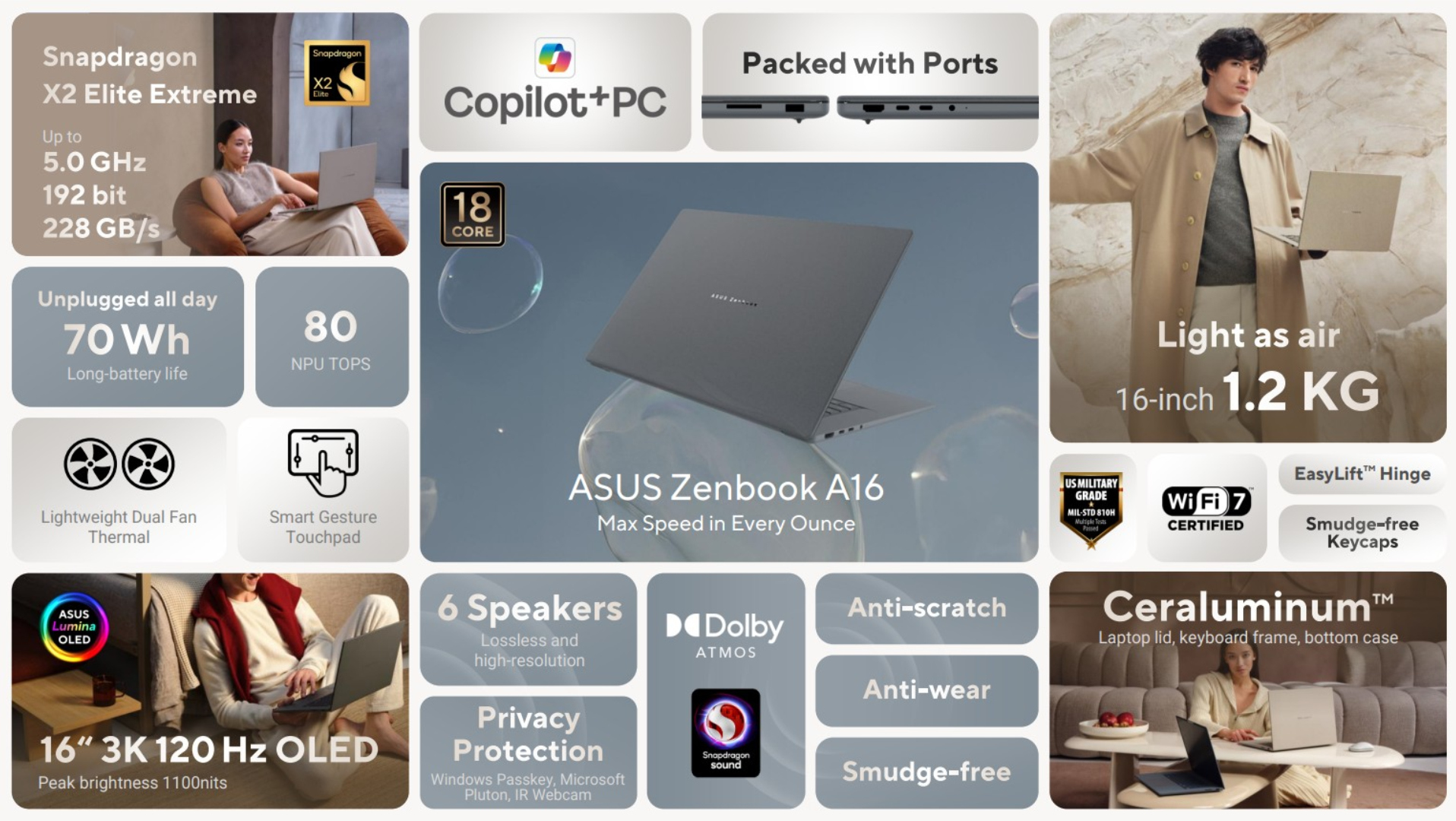Ранее на этой неделе, Asus выпустила zenbook A16 в США. Хорошо принятый за свою высококлассную производительность и легкий форм-фактор, Zenbook A16 эффективно служит альтернативой существующему ноутбуку на базе Qualcomm Snapdragon X2 Zenbook S16(по цене $1 299 на Amazon). Многие поспешили раскритиковать Решение Asus повысить цену на Zenbook A16 на $100 вскоре после его выхода.