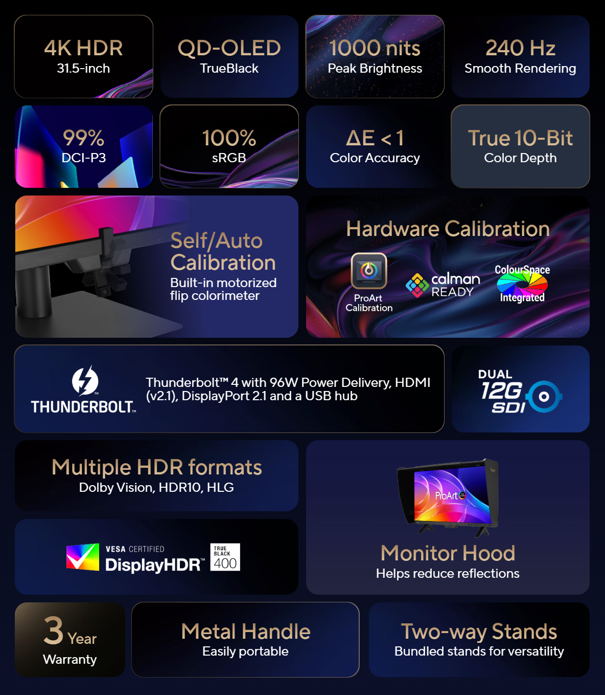 Asus выпускает новый профессиональный OLED-монитор с частотой 240 Гц и интерфейсом TB4 и 12G-SDI