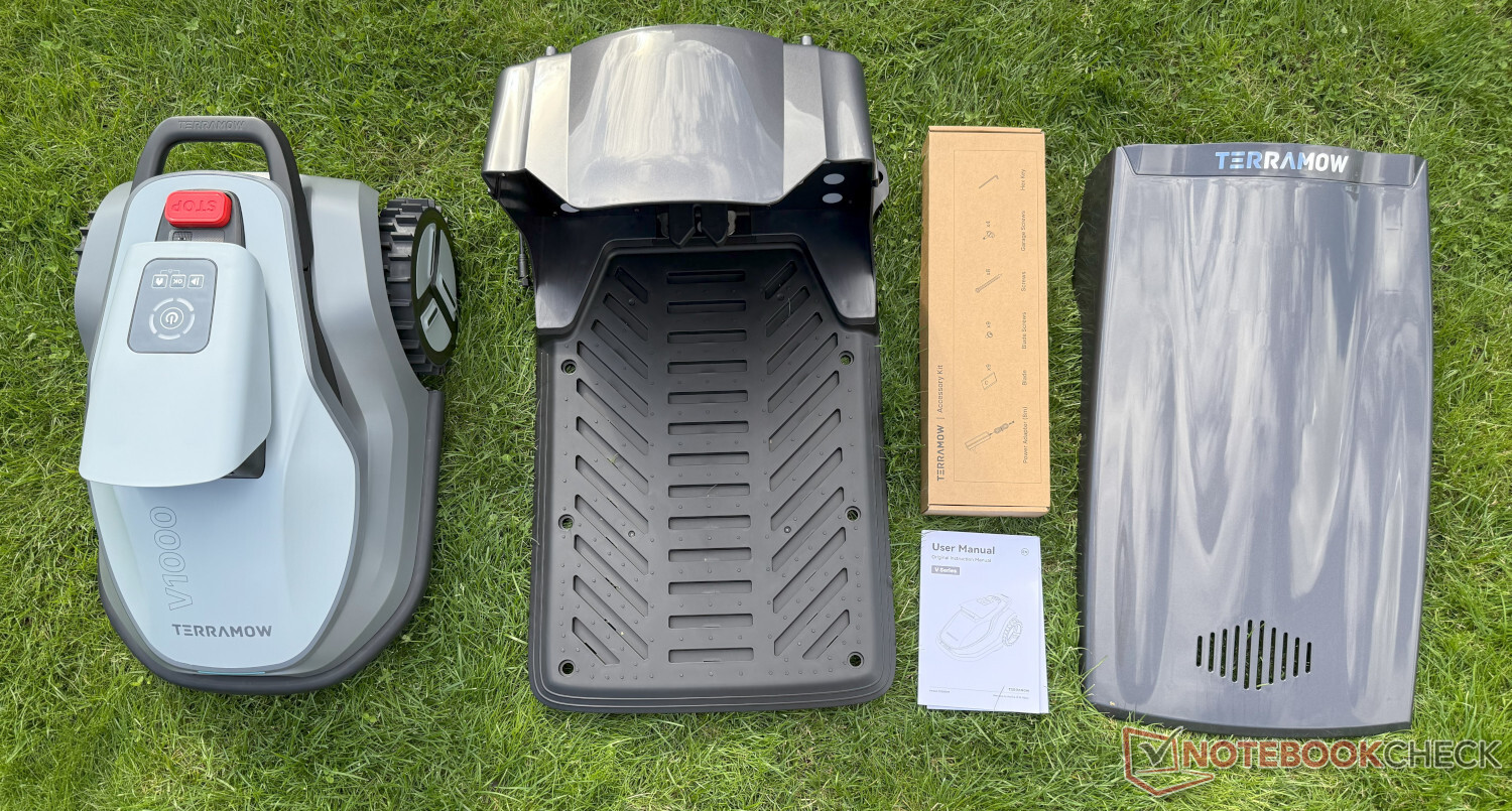Если TerraMow V1000 нужно почистить, его можно опрыскать из садового шланга, благодаря классу защиты IPX6. Лезвия можно менять с помощью отвертки, которая не входит в комплект. Кстати, крыша гаража может быть установлена без инструментов.