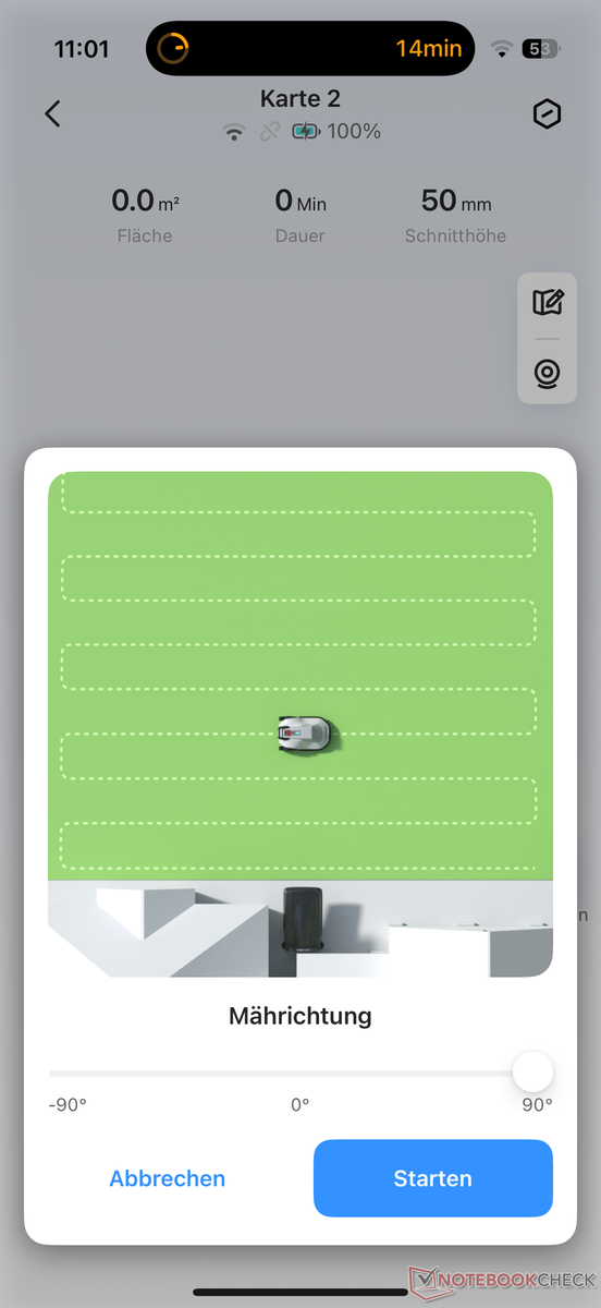 В остальном все так же, как и в прошлом году. После установки зарядной станции и установления соединения с приложением, которое в нашем тесте работало без сбоев, роботизированная газонокосилка отправляется на картографирование. Однако ему не нужно вручную патрулировать газон с помощью смартфона, что вообще невозможно. Вместо этого она самостоятельно исследует газон.