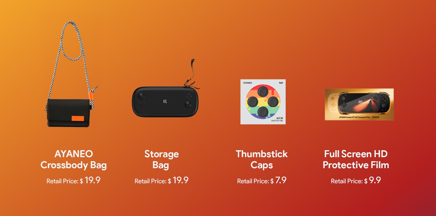 В то время как купон на $15 распространяется на предварительные заказы Snapdragon G3 Gen 3 и Snapdragon 8 Elite версии Konkr Pocket, те, кто поддержал версию Pocket Fit Elite (версия Snapdragon 8 Elite), получат подарочный пакет в дополнение к купону. Подарочный пакет включает в себя сумку для хранения Pocket Fit стоимостью $19,99, колпачки для стиков больших пальцев стоимостью $7,99, сумку Ayaneo crossbody стоимостью $19,99 и защитную пленку HD на весь экран стоимостью $9,99.