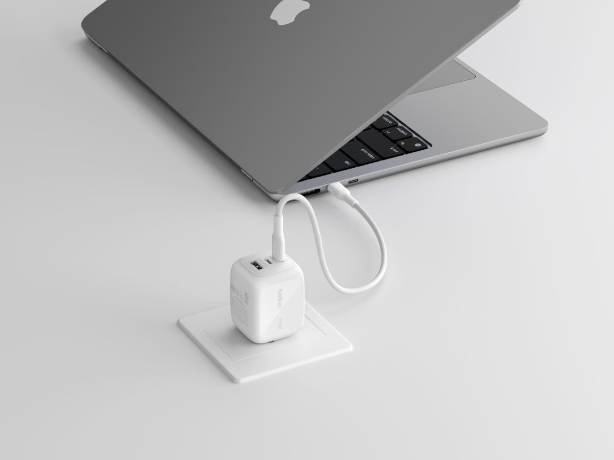 Как уже упоминалось, адаптер Belkin может выдавать 70 Вт через два порта USB-C и дополнительный USB-A, как и 3-портовое зарядное устройство Anker 70W. Каждый порт USB-C может выдавать полные 70 Вт, при этом мощность делится на 45 Вт/25 Вт или 45 Вт/22,5 Вт, когда подключены два устройства, и 45 Вт/12 Вт/12 Вт, когда используются все три порта. На практике это означает, что он может комфортно работать с таким ноутбуком, как 15-дюймовый M4 MacBook Air и одновременно заряжать два других гаджета.