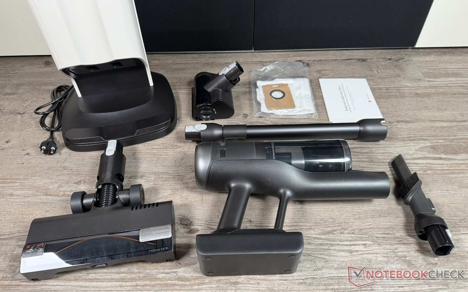 Было бы практично, если бы телескопическая трубка и щетка для пола также крепились к станции, когда пылесос используется с одной из других насадок. Помимо трех щеток (щетка для пола, моторизованная мини-щетка и щелевая щетка 2-в-1) и руководства, в комплект поставки также входит дополнительный мешок для сбора пыли, так что всего их два (один уже вставлен).