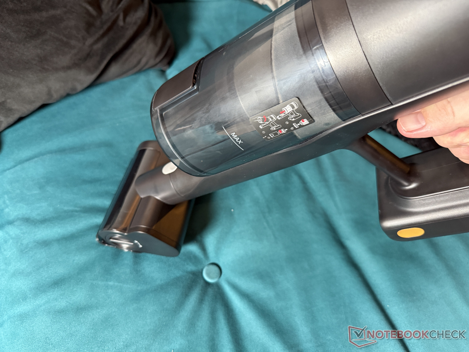 Процесс всасывания занимает всего несколько секунд, а его громкость составляет около 75 дБ (измерено с расстояния 1 м). Во время нашего тестирования контейнер для пыли был опустошен достаточно хорошо, хотя некоторое количество грязи могло остаться. Для этой цели (а также для очистки фильтра) контейнер также можно снять и очистить вручную.