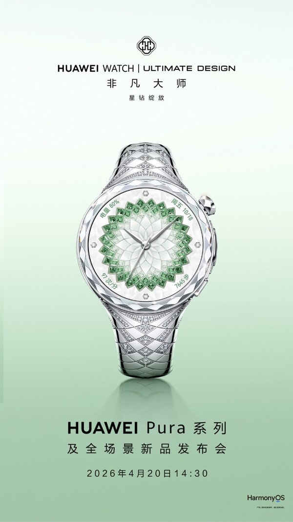 Согласно тизерному плакату, опубликованному на Weibo, часы Huawei Watch Ultimate Design Extraordinary Master Diamond Edition покрыты бриллиантами. Бриллианты расположены на отметках "12", "3", "6" и "9 часов", а также множество бриллиантов на ремешке. Даже корпус часов имеет бриллиантовую огранку.