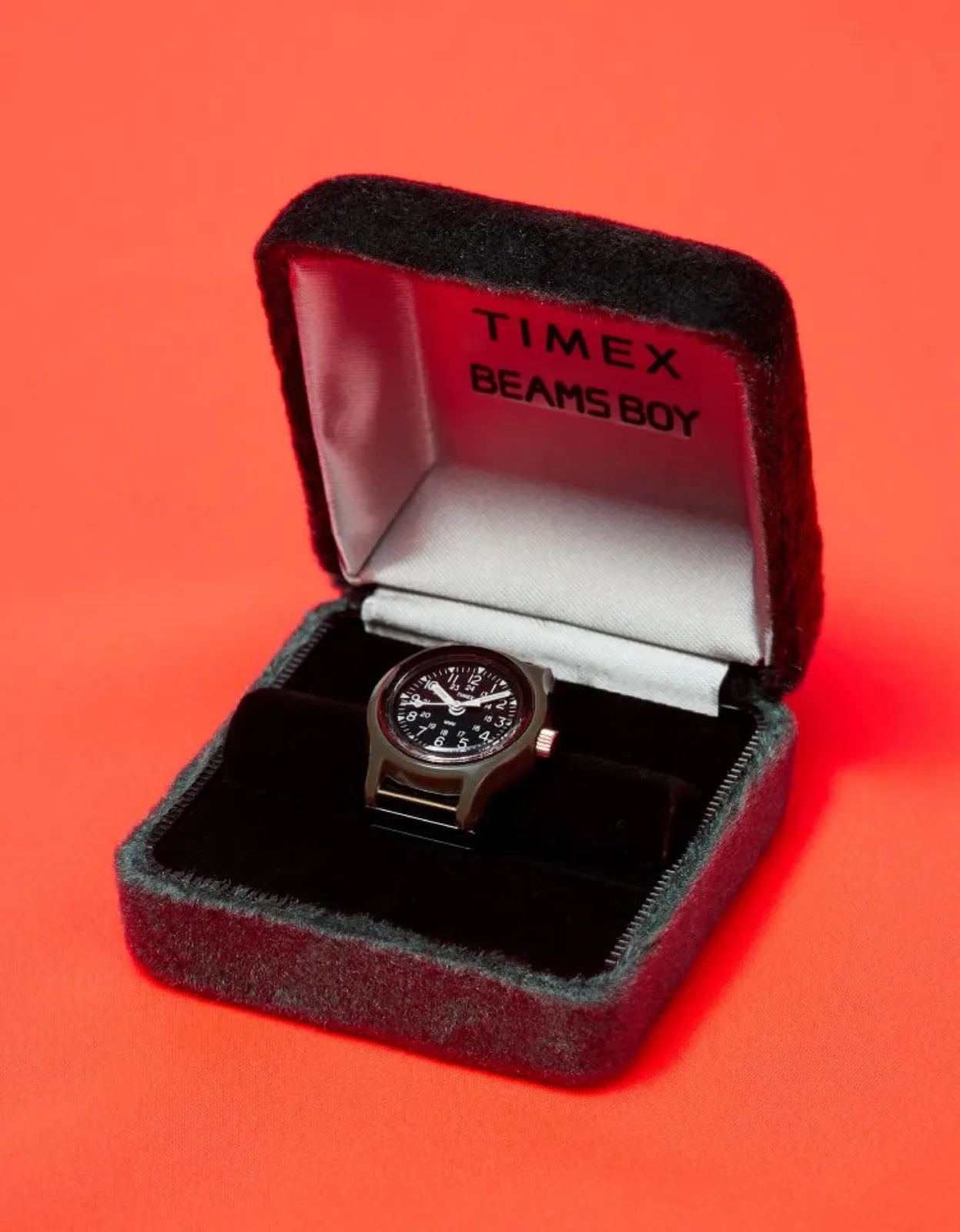 Это связано с тем, что они изготовлены из нержавеющей стали, а отдельные элементы соединены эластичной лентой. Благодаря этому Ring Watch подходят для пальцев, на которых обычно носят кольца американских размеров от 9 до 15. Однако невозможно удалить одно из звеньев браслета, чтобы сделать его подходящим для еще более маленьких пальцев. Часы Timex x Beams Boy Ring Watch будут выпущены в апреле в честь 50-летия первого магазина Beams в Харадзюку, Япония.