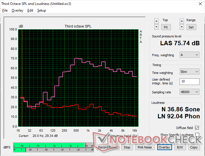 Что касается качества звука, то спад розового шума на частоте 500 Гц круче, чем ожидалось, в то время как в идеале изменение должно быть более постепенным. Звук с мини-ПК отлично подходит для конференций или звонков, но узкий диапазон динамиков не подходит для мультимедийных целей.