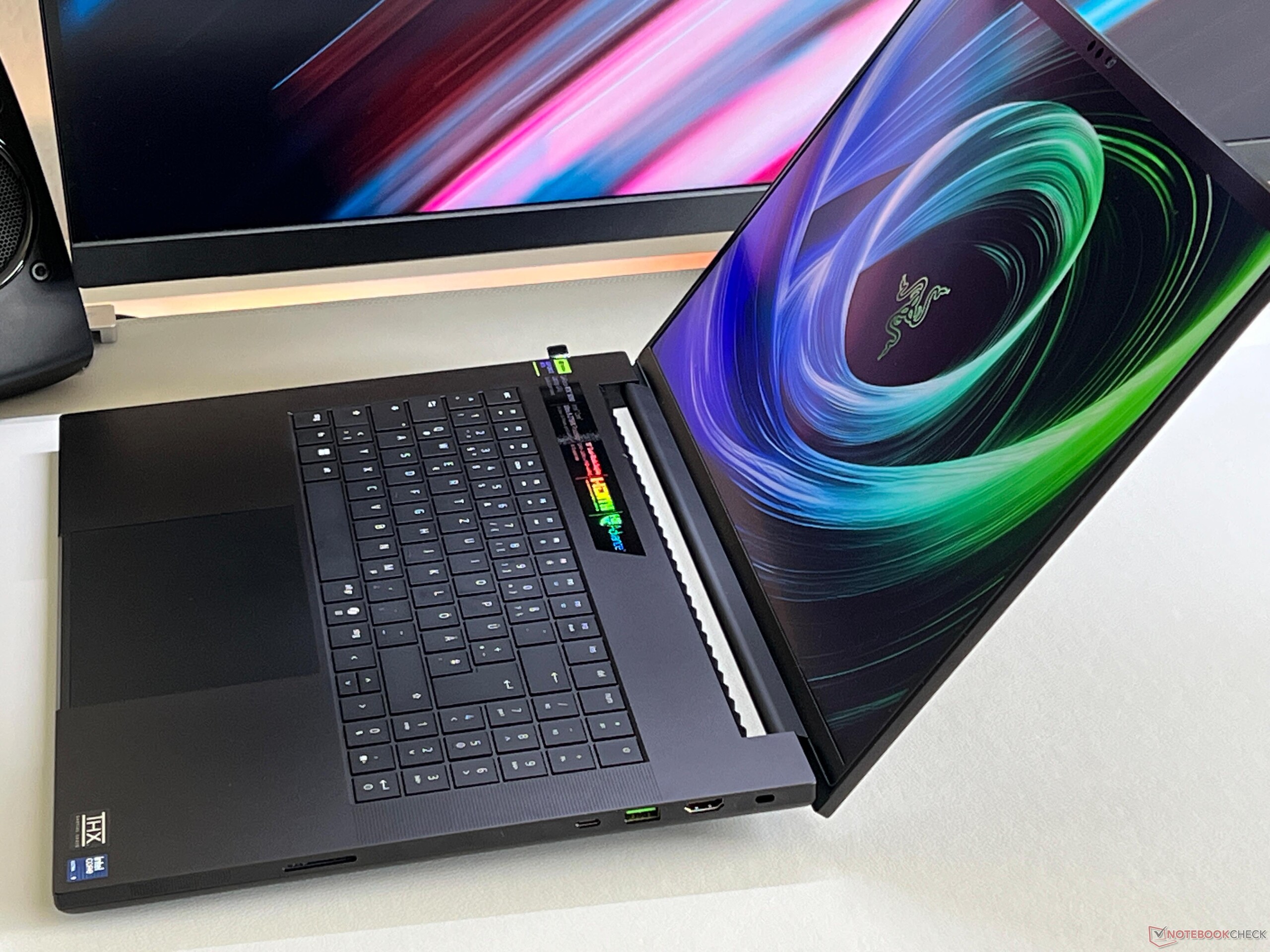Компания Razer значительно изменила дизайн Blade 18. Однако новый дизайн включает в себя выпуклость для системы охлаждения, которая выглядит не очень гармонично. Однако сама система охлаждения работает адекватно, и в играх новый Blade 18 - одна из самых тихих моделей на рынке, даже в турбо-режиме. Производительность мобильного GPU RTX 5090 превосходна; однако ему не хватает поддержки PCIe 5.0. Razer также включила в комплект специальную цифровую панель, но из-за короткого хода клавиш удобство набора текста страдает.