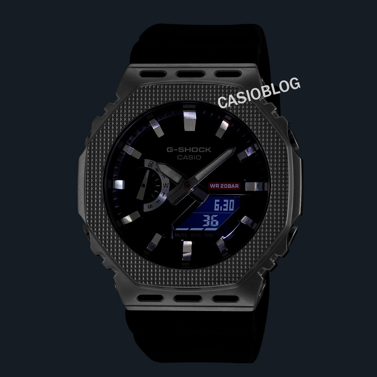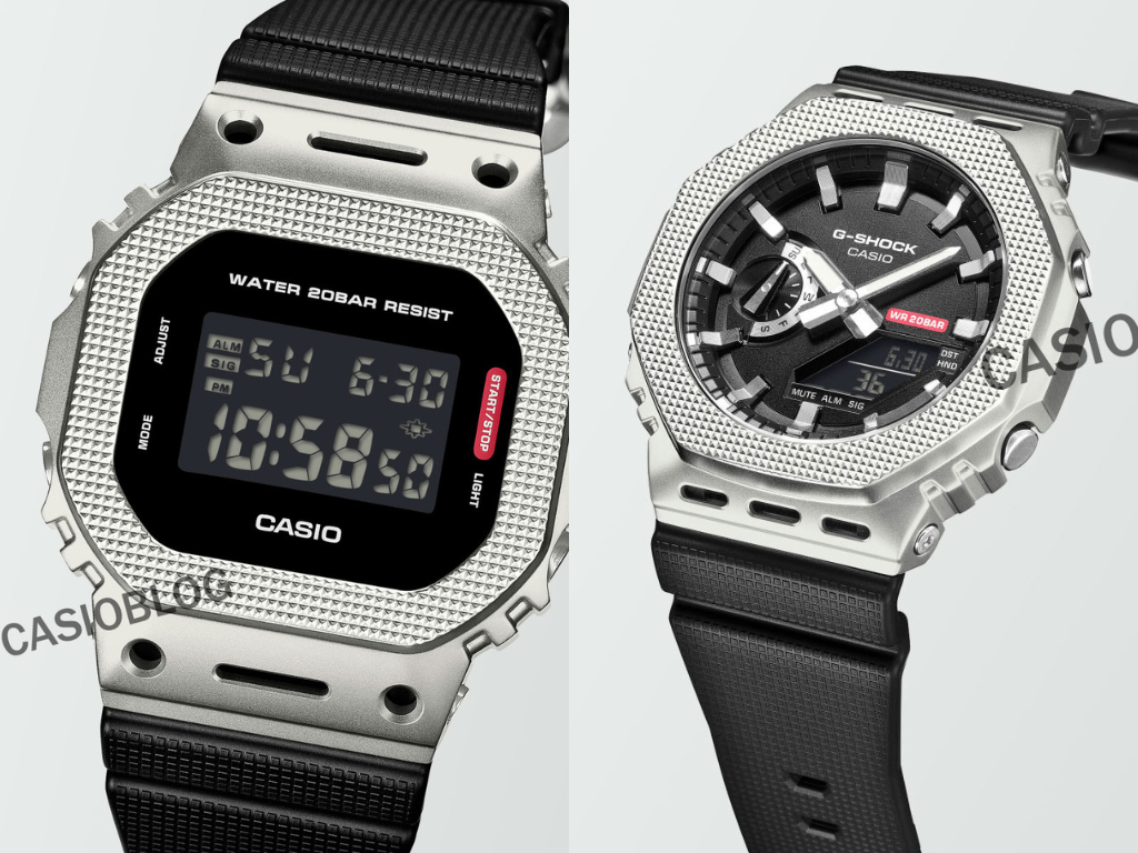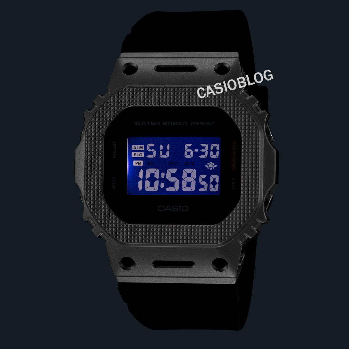 Обе модели, GM-5600M-1 и GM-2100M-1A, оснащены негативными (перевернутыми) ЖК-дисплеями с высокой контрастностью, а жирная красная надпись "WR 20BAR" выделяет их на фоне полностью черной поверхности. Кроме того, особое внимание уделяется тому, что вся поверхность, а не только ободок, обработана лазером для придания матового антибликового вида, что еще больше снижает вероятность видимого износа или появления отпечатков пальцев - бонус для пользователей, носящих часы ежедневно.