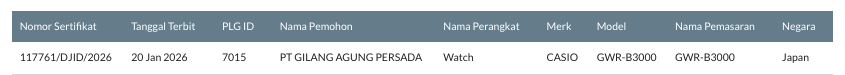 На подходе новая модель Casio G-Shock: GWR-B3000. Номер модели был недавно замечен в таких базах данных, как Генеральный директорат ресурсов и оборудования для почты и информационных технологий в Индонезии (SDDPI).