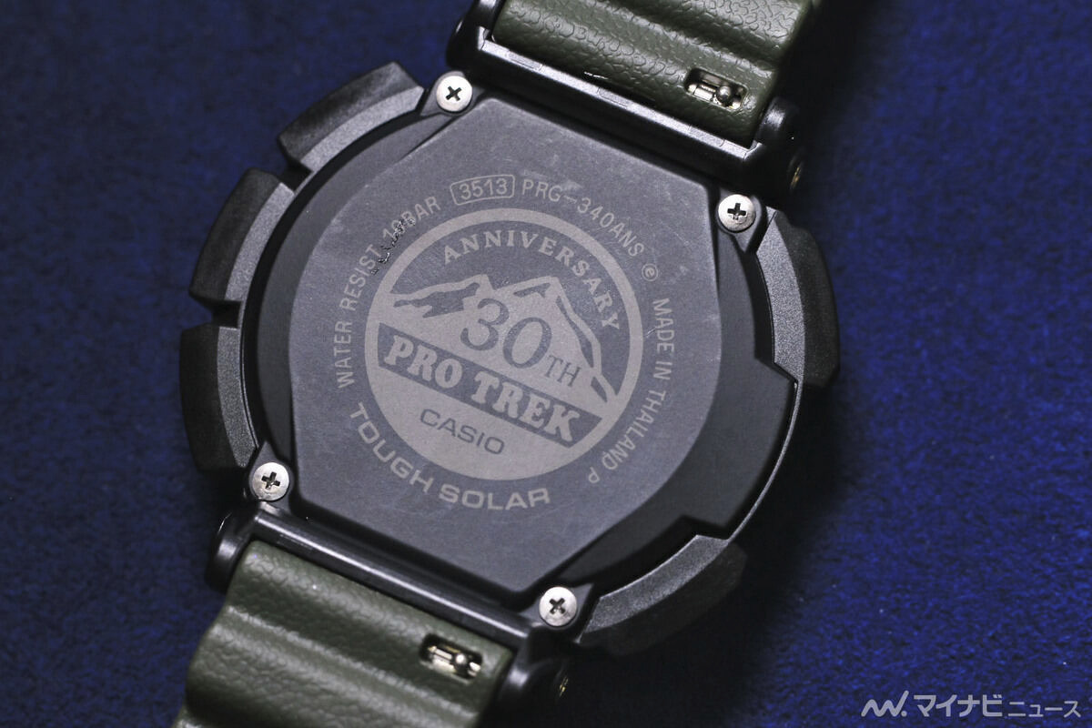 Еще одна небольшая, но примечательная деталь: гравировка на задней крышке часов PRG-340ANS-3 имеет более утонченный логотип 30-летия, чем раньше, с четким шрифтом и твердым центрированием. Он выглядит намеренно смелым, скорее всего, для того, чтобы закрепить памятную ценность модели.