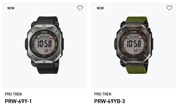 Наряду с новым Casio GMC-B2100 и GMW-BZ5000 casio также представила новую линейку Pro Trek с серией PRW-69, включая PRW-69Y-1 и PRW-69YB-3. Обе модели запланированы к выпуску на апрель 2026 года и имеют одинаковое основное оборудование, а различия заключаются в основном в материале и цвете ремешка.