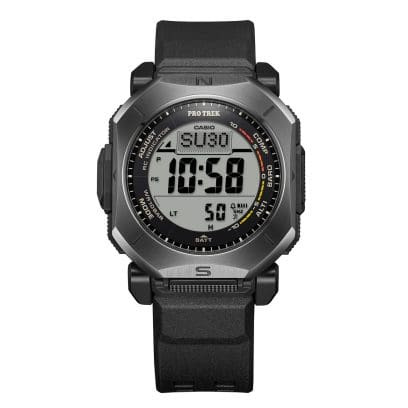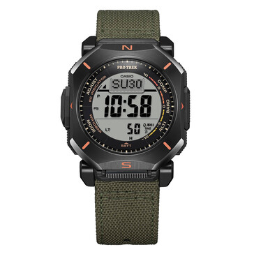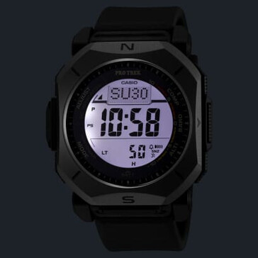 Это часы с тройным датчиком. Они включают в себя цифровой компас, альтиметр (от -700 до 10 000 м), барометр с графиком изменения давления и термометр. Дуплексный ЖК-дисплей здесь играет ключевую роль - графики компаса накладываются поверх основного дисплея для более удобной навигации в реальном времени. Casio утверждает, что компас может работать непрерывно до 60 секунд, а отслеживание направления отображается динамически.