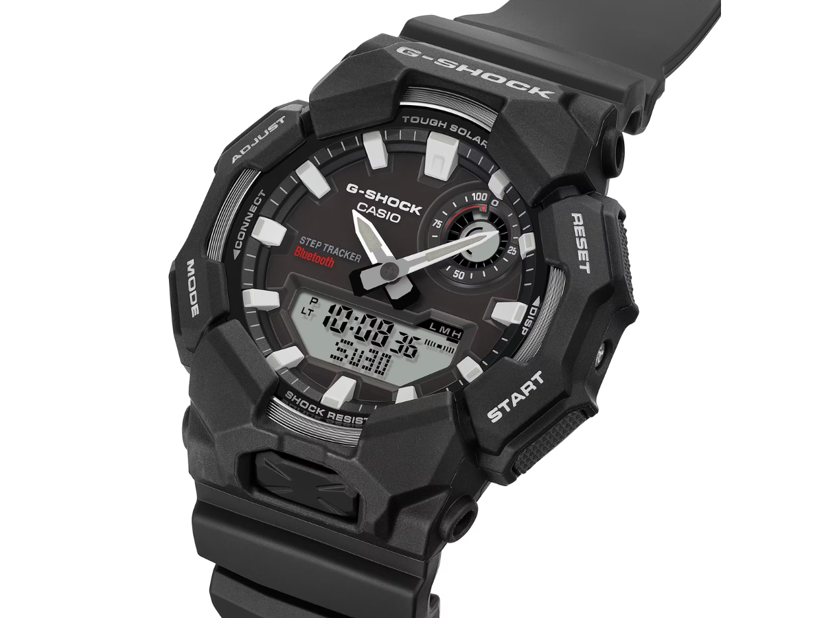 Casio GA-B010 - это гибридные часы с двумя аналоговыми стрелками, цифровым дисплеем меньшего размера и циферблатом, на котором отображается Ваш прогресс в достижении цели по шагам. Другие функции, связанные с шагами, включают напоминания о шагах и журнал данных в приложении для смартфона Casio Watches, благодаря возможности подключения через Bluetooth. В приложении Вы также можете получить доступ к таким инструментам, как автоматическая корректировка времени и поиск телефона. Эти часы поддерживают мировое время с 55 городами на выбор, а также такие функции, как таймер обратного отсчета, почасовые сигналы времени, секундомер с точностью до 1/100 секунды и пять ежедневных будильников. Кроме того, эта модель предлагает зарядку Tough Solar и водонепроницаемость 200 м.