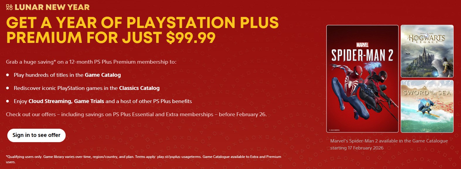Цены на PlayStation Plus Premium и Extra значительно снижаются во время распродажи Sony на Лунный Новый год