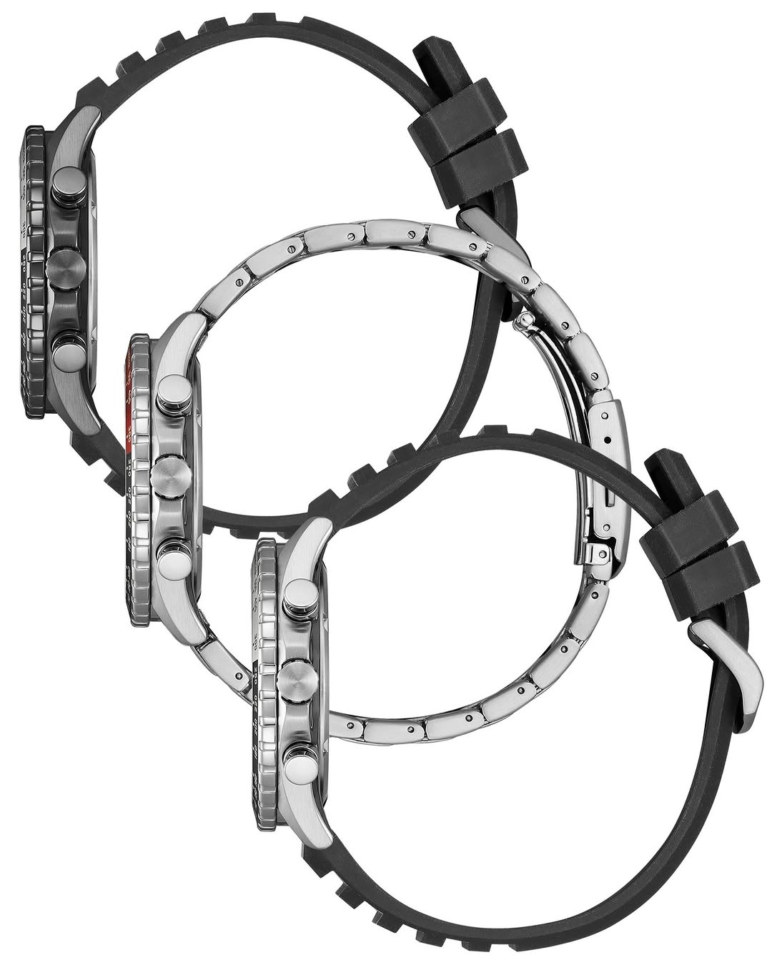 Конфигурация дизайна у всех трех моделей отличается. Модель AT2565-05E имеет корпус из нержавеющей стали с черным напылением и дополнительными циферблатами зеленого цвета и поставляется на текстурированном черном каучуковом ремешке. Модель AT2566-88E имеет стандартную серебристую отделку с двухцветной красно-черной вставкой на безеле и многозвенным браслетом из нержавеющей стали, а ее общий вес составляет 153 г. Наконец, модель AT2569-04L оснащена синим циферблатом с черно-серебристой вставкой на безеле и также имеет черный каучуковый ремешок. Хотя 10-барная водонепроницаемость делает эти модели подходящими для умеренной водной активности, выбор минерального стекла вместо сапфирового в этой ценовой категории будет большим механическим компромиссом для тех, кто предпочитает ударопрочность, а не защиту от царапин.