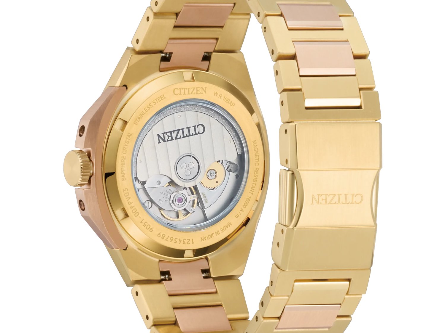 Модель NB6085-57W появилась вскоре после того, как Citizen US представила NB6060-07A, более спортивный вариант Серии 8 с внутренним вращающимся безелем и полиуретановым ремешком. Новые золотистые NB6085-57W используют более традиционный подход, сочетая корпус из нержавеющей стали с двухцветной отделкой и интегрированным браслетом.