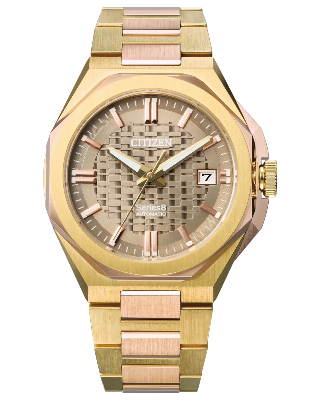 В феврале компания Citizen обновила линейку механических часов Series 8 четырьмя новыми моделями новыми моделями с более тонкими 39-миллиметровыми корпусами. Изначально представленная только на японском рынке, компания теперь выпускает по крайней мере одну модель из новой линейки в США: золотистую NB6085-57W.