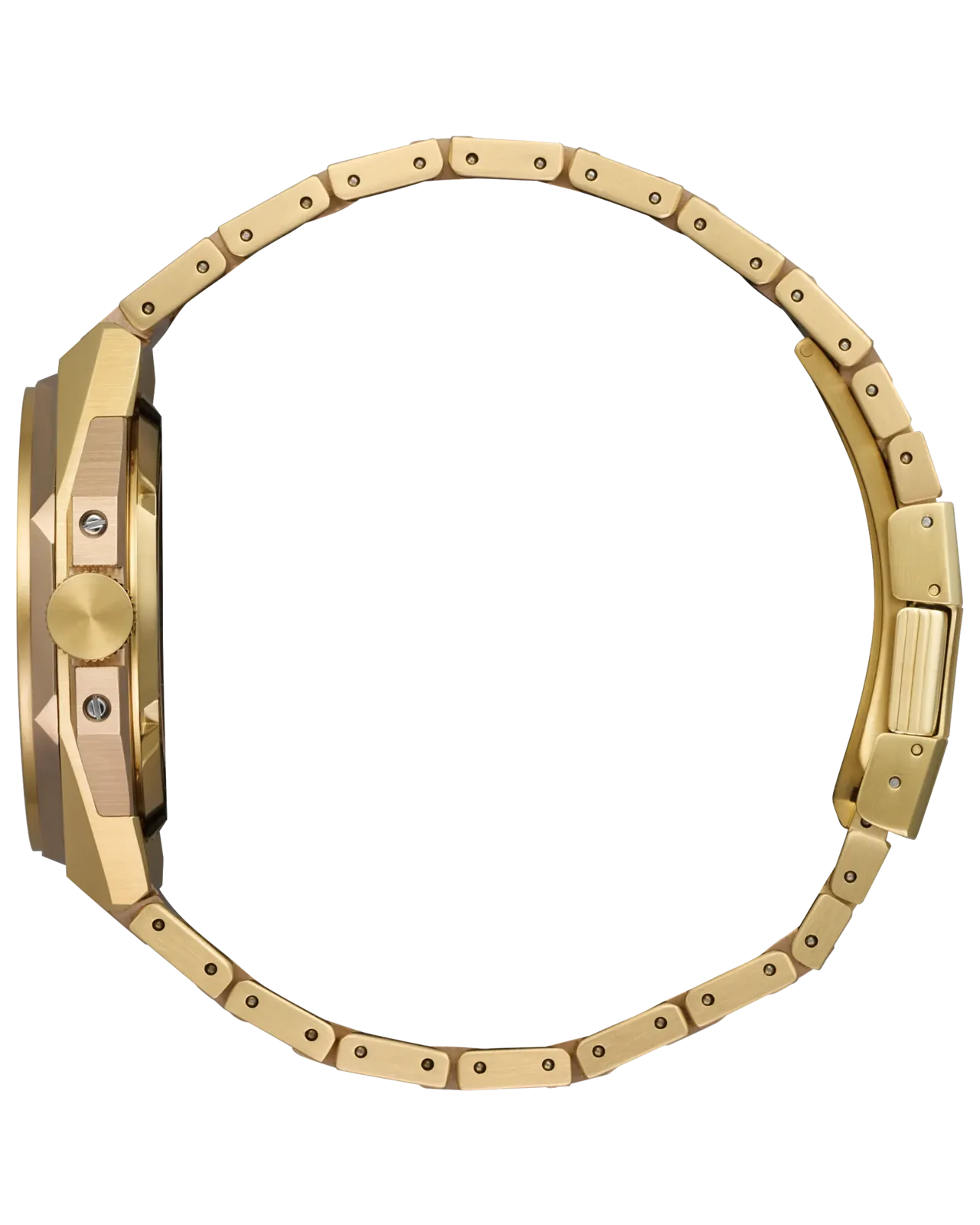 Это более тонкий 39-миллиметровый восьмиугольный корпус с поверхностями цвета желтого золота и акцентами цвета розового золота. Двухцветный дизайн распространяется и на браслет, в котором используются матовые внешние звенья и полированные центральные.