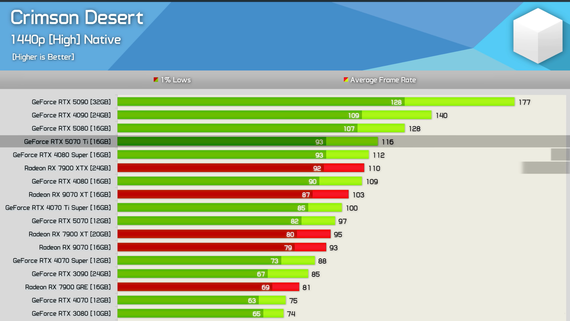 Таким образом, игровой процесс с высокой частотой обновления в 1440p в Crimson Desert, как сообщается, требует RTX 5070 Ti, RTX 5080 и RTX 5090. Однако, как только Вы опускаетесь до настроек "High", даже RTX 5070 может обеспечить Вам около 100 FPS.