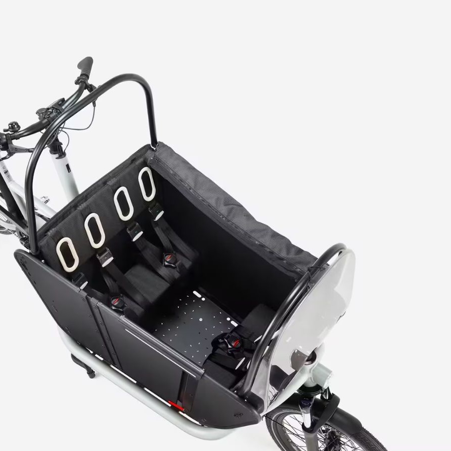 По словам представителей компании Decathlon, в багажник Btwin F900E легко могут забраться дети, ведь в нем есть места для трех пассажиров. Для багажника предусмотрен защитный дождевой чехол и ветровое стекло, а сам грузовой велосипед выдерживает максимальную нагрузку 184 кг (~406 фунтов). На низкой проходной раме установлены фары, а на шинах есть светоотражающие полоски, которые помогут сделать Вас заметным в темное время суток. Еще один аксессуар - цветной дисплей на ноге электровелосипеда, на котором отображается такая информация, как режим помощи и оставшийся уровень заряда батареи. Кроме того, электровелосипед оснащен устройством 4G/GPS, хотя для отслеживания GPS требуется подписка.