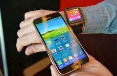 Первым делом нужно рассказать про долгожданный Galaxy S5, который вместе с несколькими умными часами представила Samsung. Корпус, увы, по-прежнему пластиковый, дизайн же и вовсе стал похож на устройства среднего эшелона - вроде Galaxy S Duos. Слухи про экран высокого разрешения не подтвердились, он остался тем же, что и в модели Galaxy S4 (1920x1080 точек). Даже такую мелочь, как гибкость экрана, разработчики решили оставить для следующих поколений устройств Galaxy. Зато добавлена пыле- и влаго-стойкость. За передачу данных отвечают интерфейсы micro-USB 3.0, 3G/LTE, WiFi b/g/n/ac, Bluetooth. Есть сканер подушечки пальца, который умеет еще и подсчитывать пульс пользователя. Камера с разрешением 16 Мп умеет снимать видео в разрешении 2160p, разрешение фронтальной камеры - 2.1 Мп. Объем встроенной памяти равен 16 Гб либо 32 Гб, а еще поддерживаются карточки micro-SD объемом до 128 Гб. Процессором выступает Snapdragon 801 с частотой 2.5 ГГц, дата появления устройства в продаже - март 2014.
