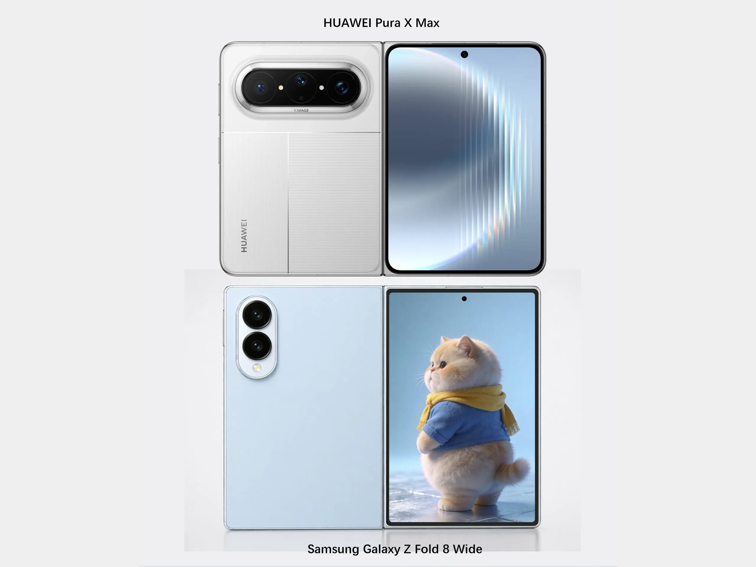 Детальный дизайн, размер: Galaxy Z Fold 8 Wide гораздо тоньше и меньше по ширине, чем Huawei Pura X Max