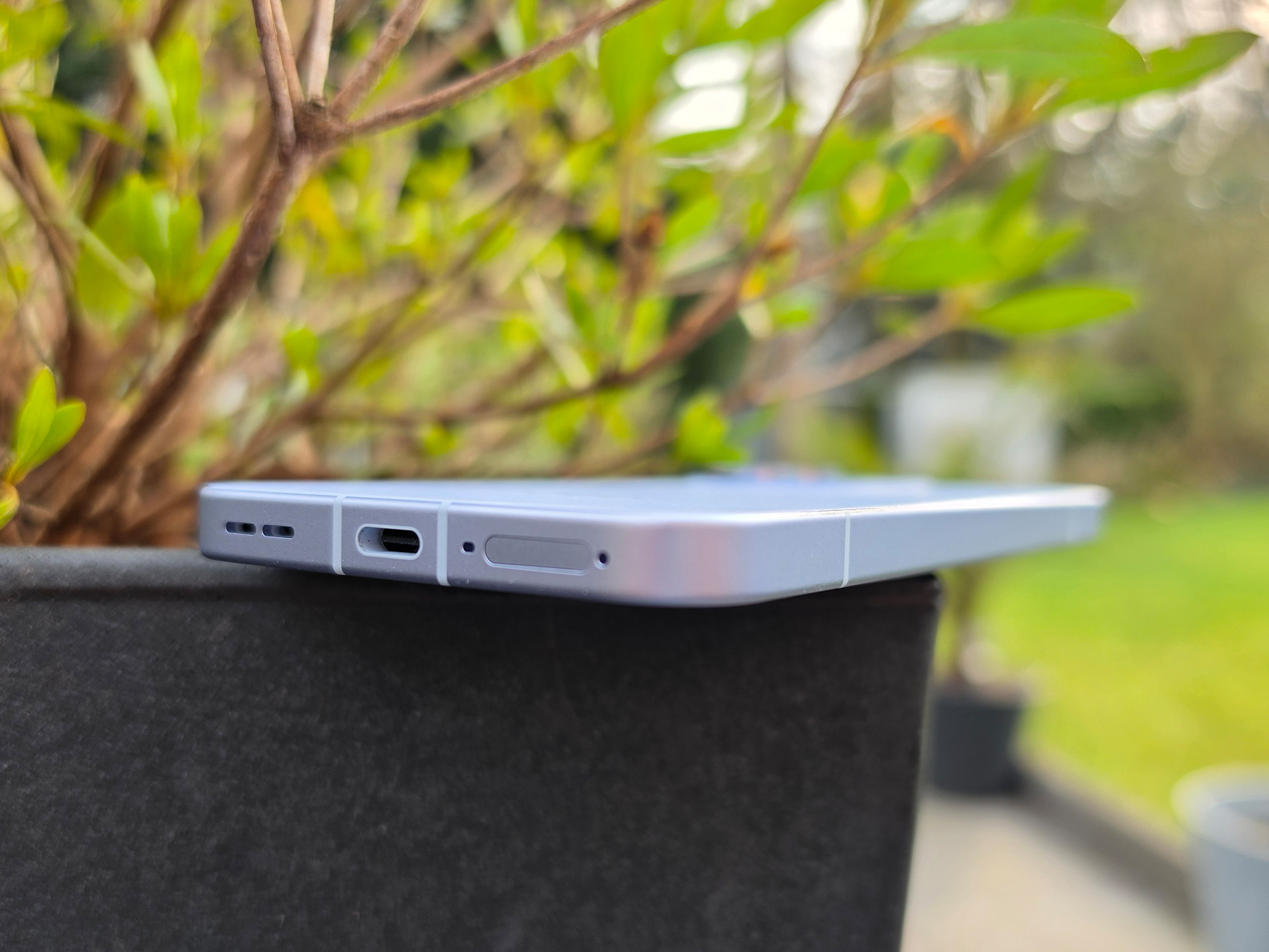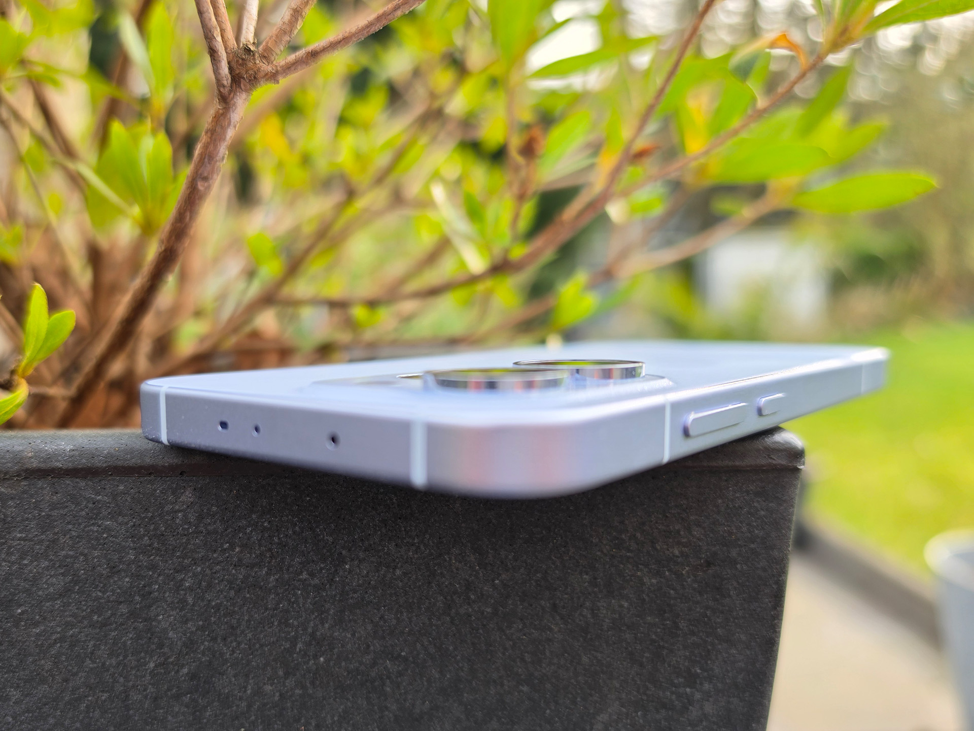 Матовая алюминиевая рамка устойчива к отпечаткам пальцев, а дисплей защищен стеклом Gorilla Glass 7i. Хотя задняя панель сделана из пластика, она хорошо выполнена и визуально привлекательна. В целом, качество сборки убедительное, а смартфон сертифицирован по стандарту IP68, что делает его пыле- и водонепроницаемым.