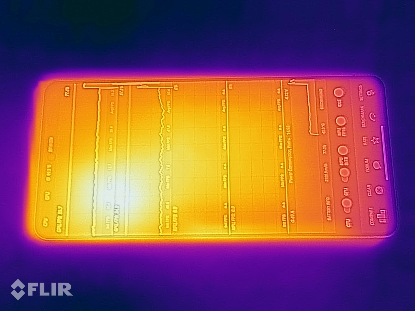 Температура поверхности заметно повышается под нагрузкой, но остается в безопасном диапазоне. Тем не менее, дросселирование в стресс-тесте 3DMark довольно выражено.