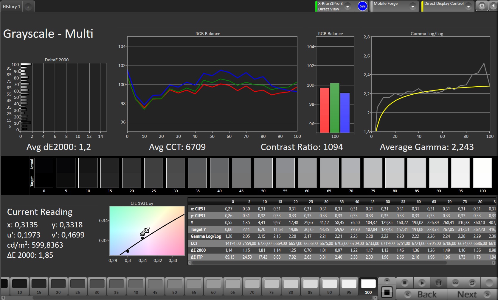 ΔE Greyscale Calman: 2.5 | ∀{0.09-98 Ø5}