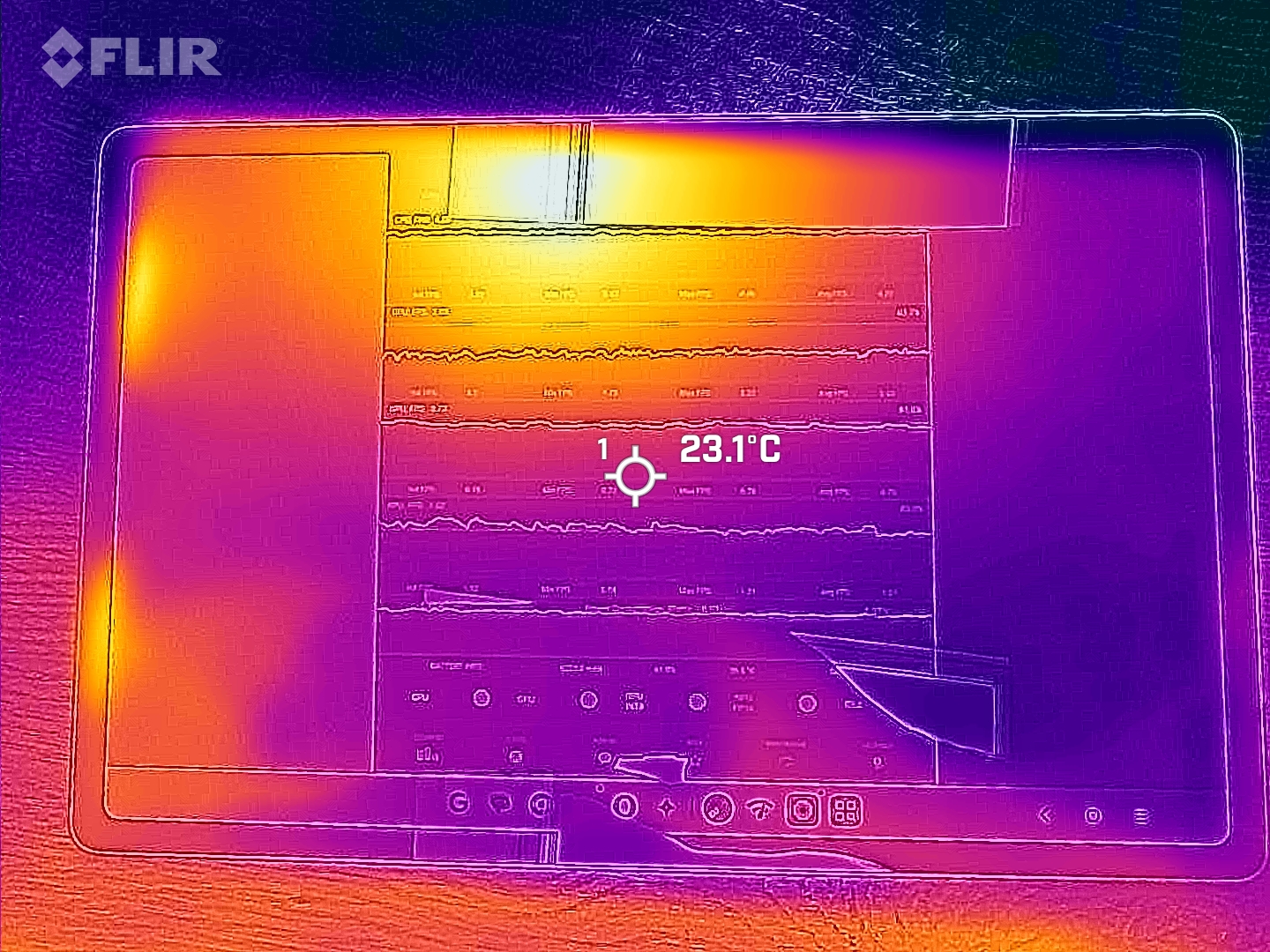 (+) Макс. температура верха корпуса составила 31.4 град. Цельсия. Типичное значение для устройств этого же класса (Tablet) = 33.7 градуса (-ов) при минимуме в 20.7 град. и максимуме в 53.2 град.