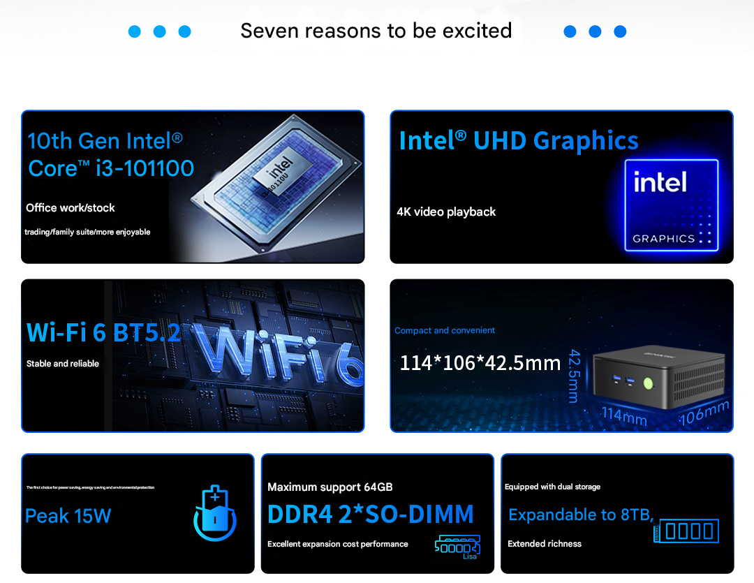 В нем установлен Core i3 10110Uдоступный мобильный процессор из линейки Comet Lake. Процессор имеет два ядра и четыре потока, а это значит, что мини-ПК не сможет с легкостью справиться с тяжелыми рабочими нагрузками. Имеется iGPU Intel UHD 620, который значительно отстает от новейших интегрированных GPU, но все же хорошо справляется с обычными медиафайлами.