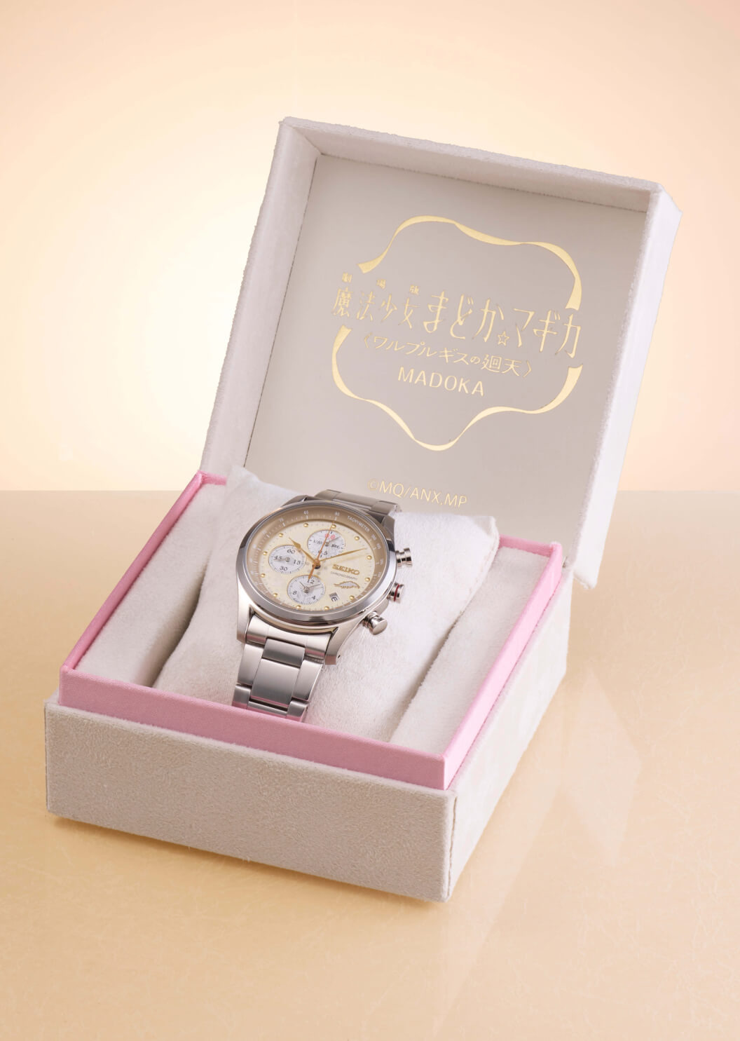 Сотрудничество состоит из двух различных референсов. Модель Madoka (NEODAI-286770) имеет бледный циферблат цвета шампанского с золотом, помещенный в корпус из матовой нержавеющей стали. Циферблат подчеркнут нежно-розовыми бликами и мотивами дополнительных циферблатов, которые во многом вдохновлены лентами трансформации персонажа. Модель Homura (MD25-1132002) имеет более агрессивный профиль, в ней используется черный корпус с ионным напылением и затемненный циферблат. На дополнительном циферблате в положении "шесть часов" изображены "бегущая ящерица" и "стоящая на коленях Хомура" из недавних театральных трейлеров.
