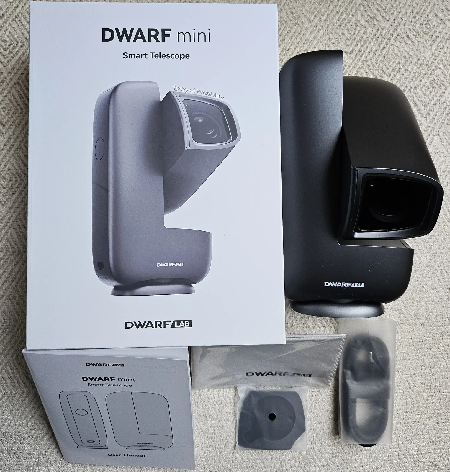 В довольно привлекательной упаковке находится телескоп, кабель USB-C-to-USB-C для зарядки внутреннего аккумулятора, солнцезащитный фильтр с магнитным креплением, чистящая салфетка и краткое руководство по эксплуатации на шести языках.