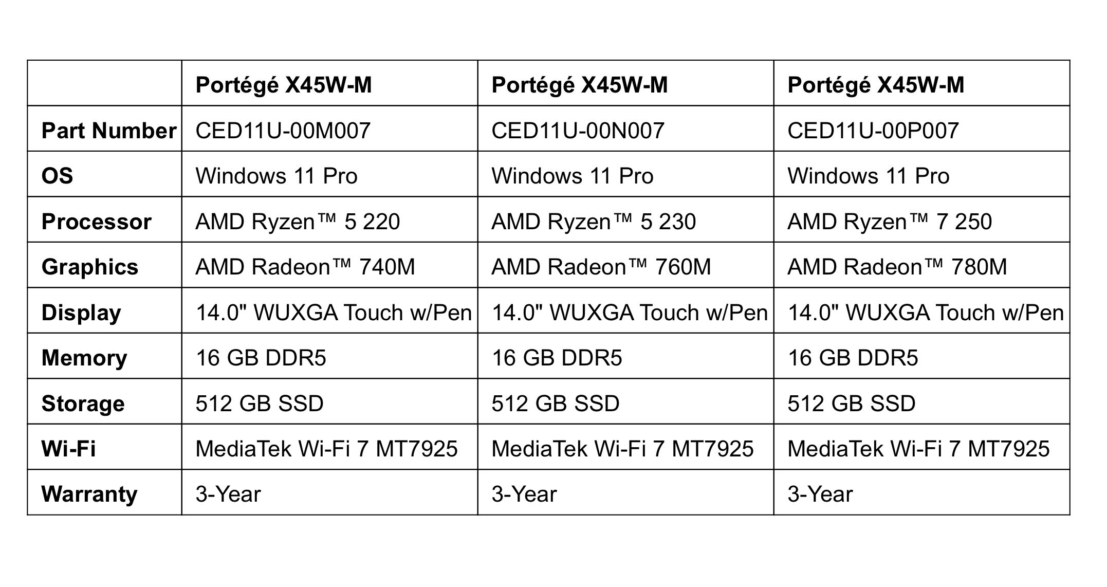 Ноутбук Protege X45W может быть оснащен до AMD Ryzen 7 250 APU, оснащенным 8 ядрами и 16 потоками. Этот APU является представителем стареющего семейства Hawk Point. Неудивительно, что ядра Zen 4 уже начали показывать свой возраст, но они должны быть достаточно способными в многоядерной производительности. Будут доступны и более дешевые варианты с Ryzen 5 220 и Ryzen 5 230.